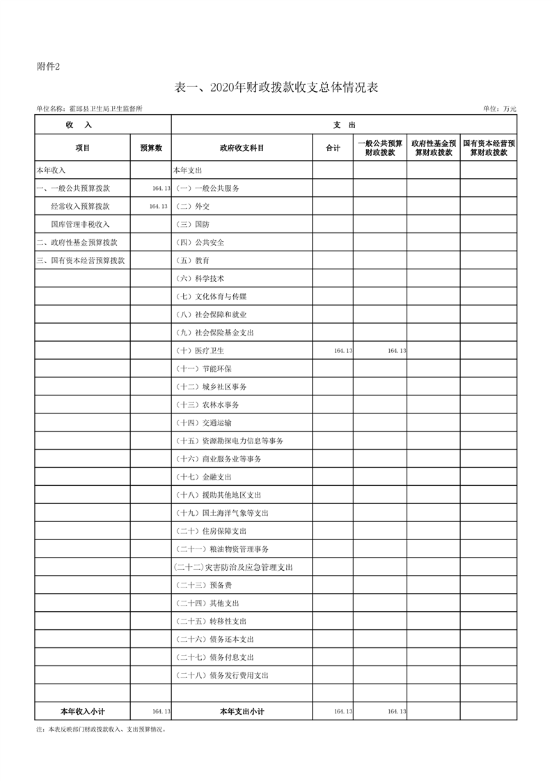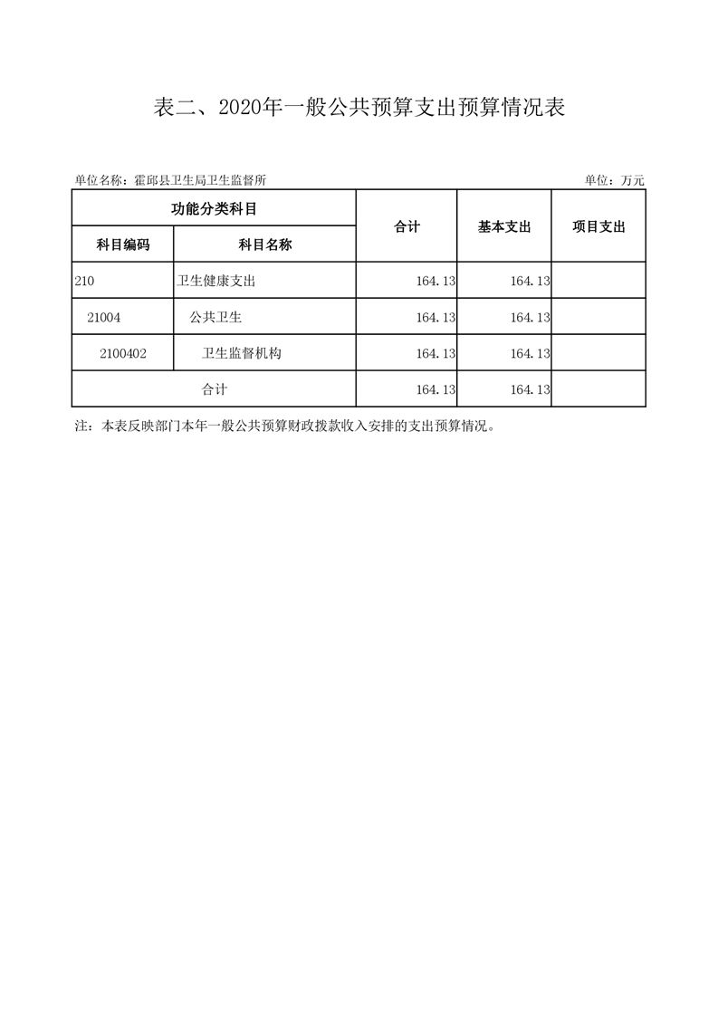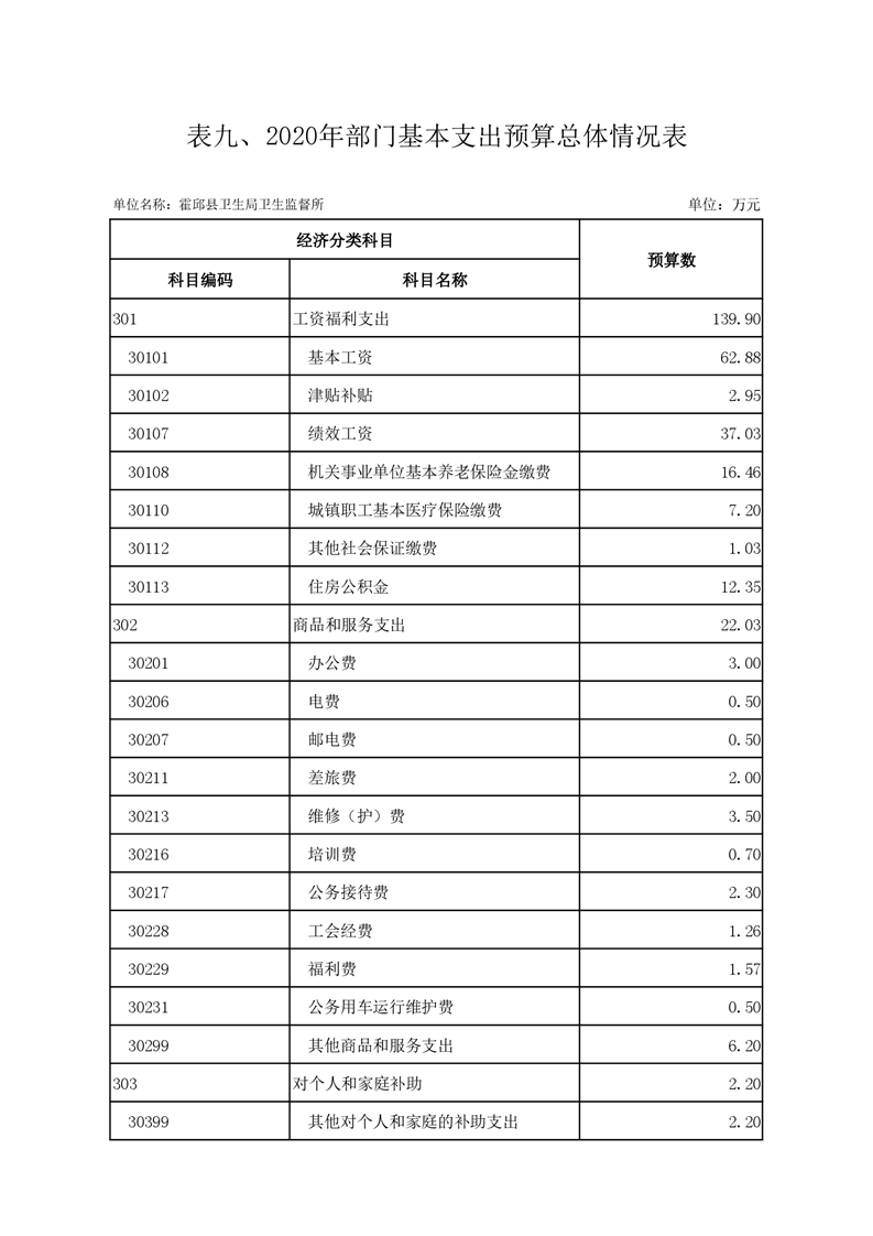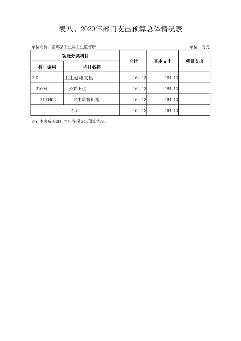 霍邱县卫生局卫生监督所2020年部门预算表由以下13张表格构成,具体表格内容见附表。