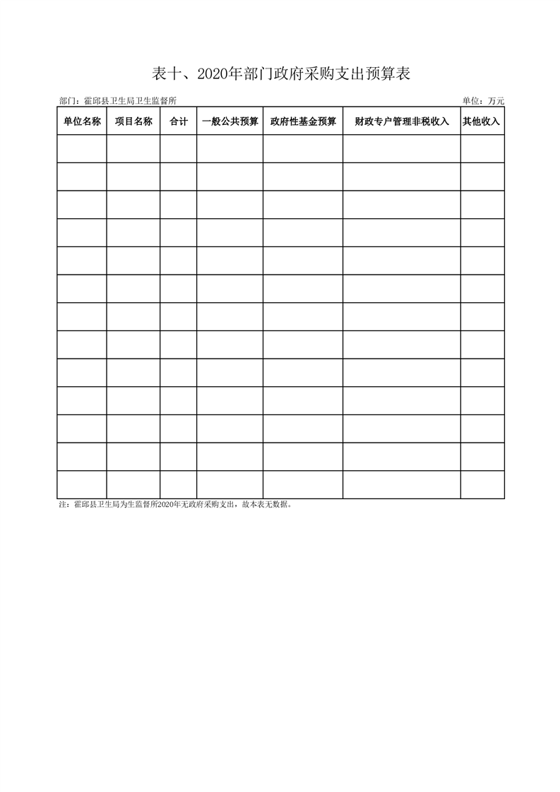 2020年霍邱县卫生局卫生监督所未安排政府采购预算。