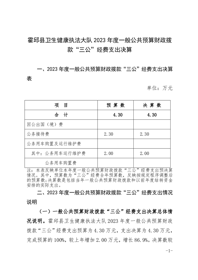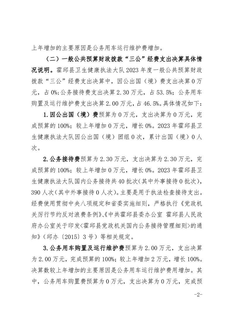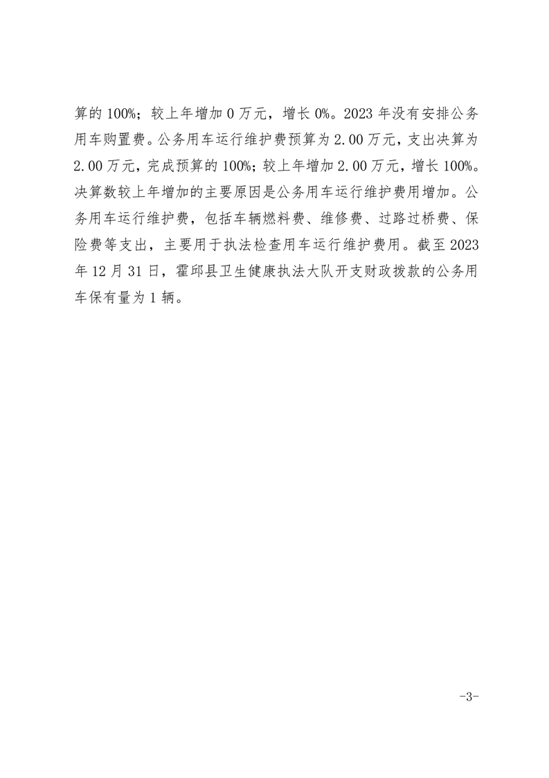 霍邱县卫生健康执法大队2023年度一般公共预算财政拨款“三公”经费支出决算