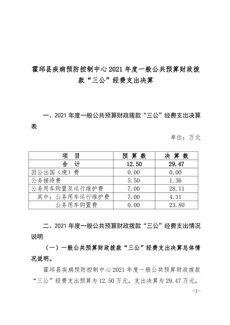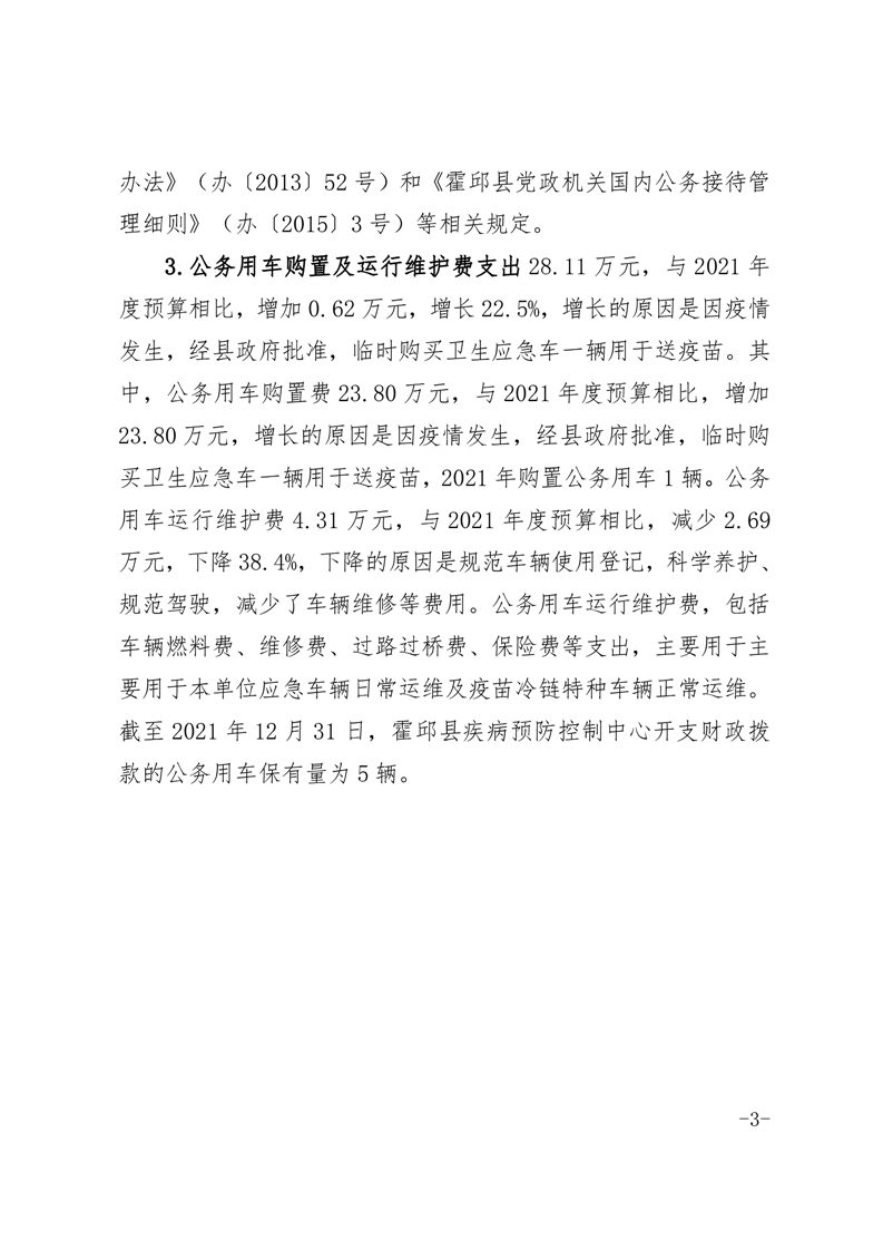 霍邱县疾病预防控制中心2021年三公经费决算公开