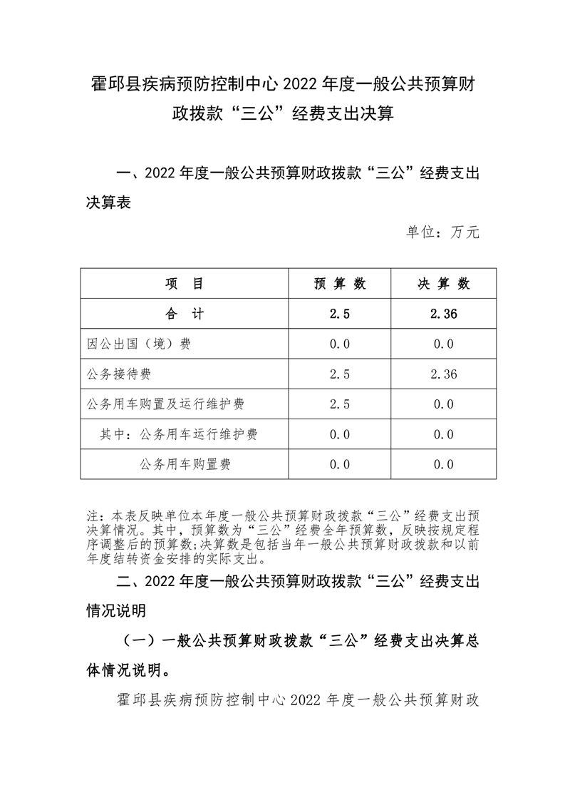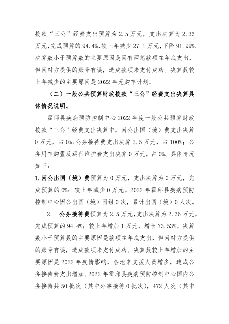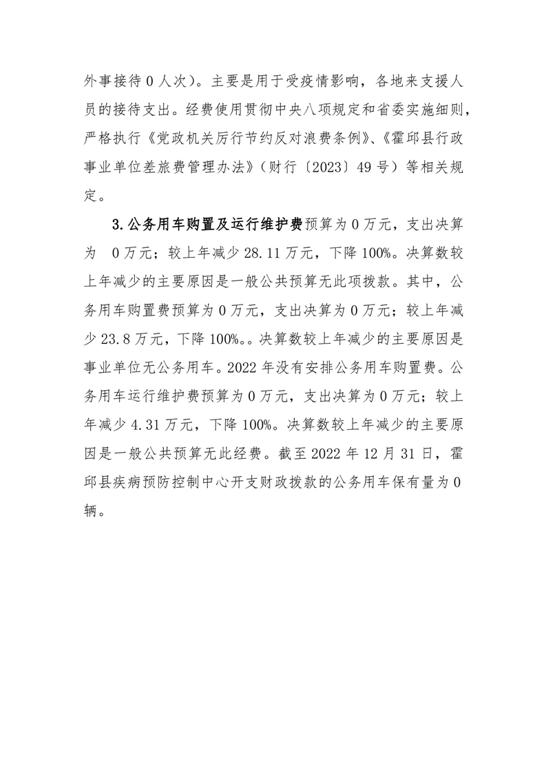 霍邱县疾病预防控制中心2022年度“三公经费”决算公开