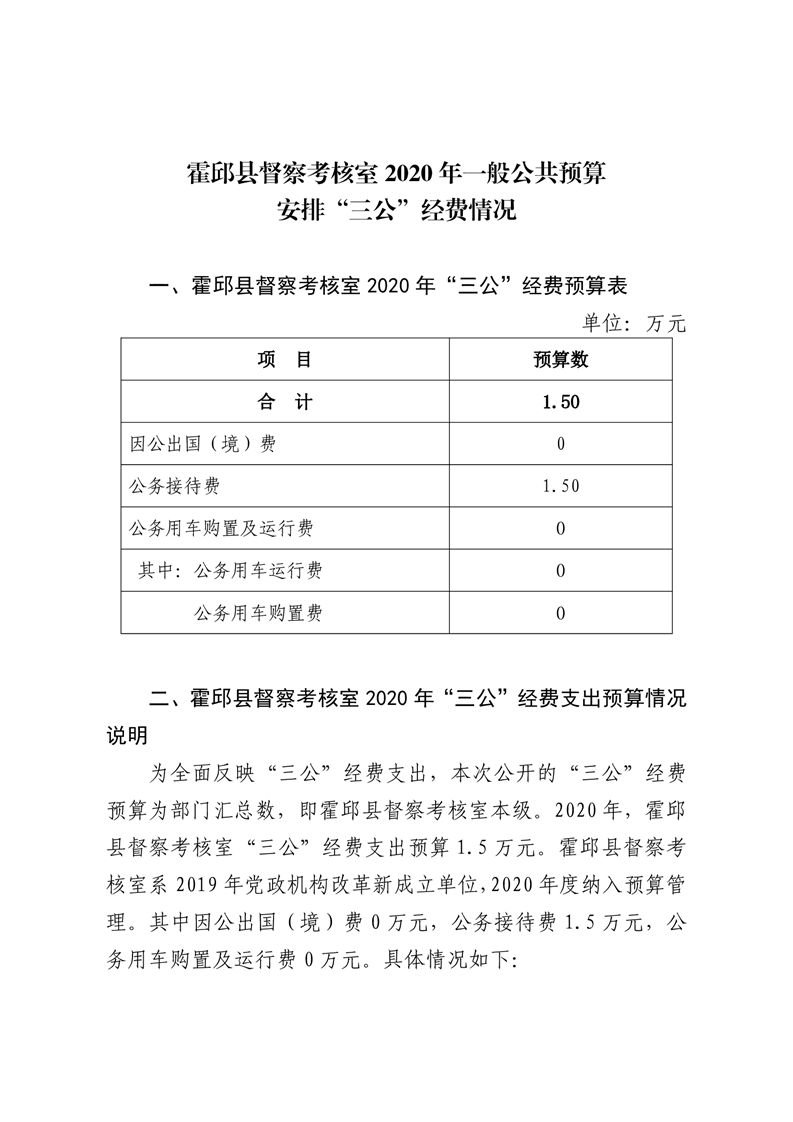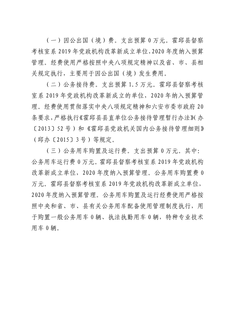 霍邱县督察考核室2020年一般公共预算安排“三公”经费情况