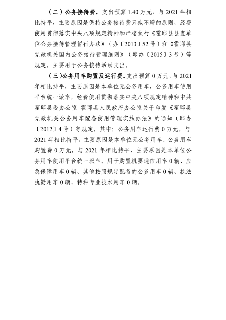 霍邱县督察考核室2022年一般公共预算安排“三公”经费情况