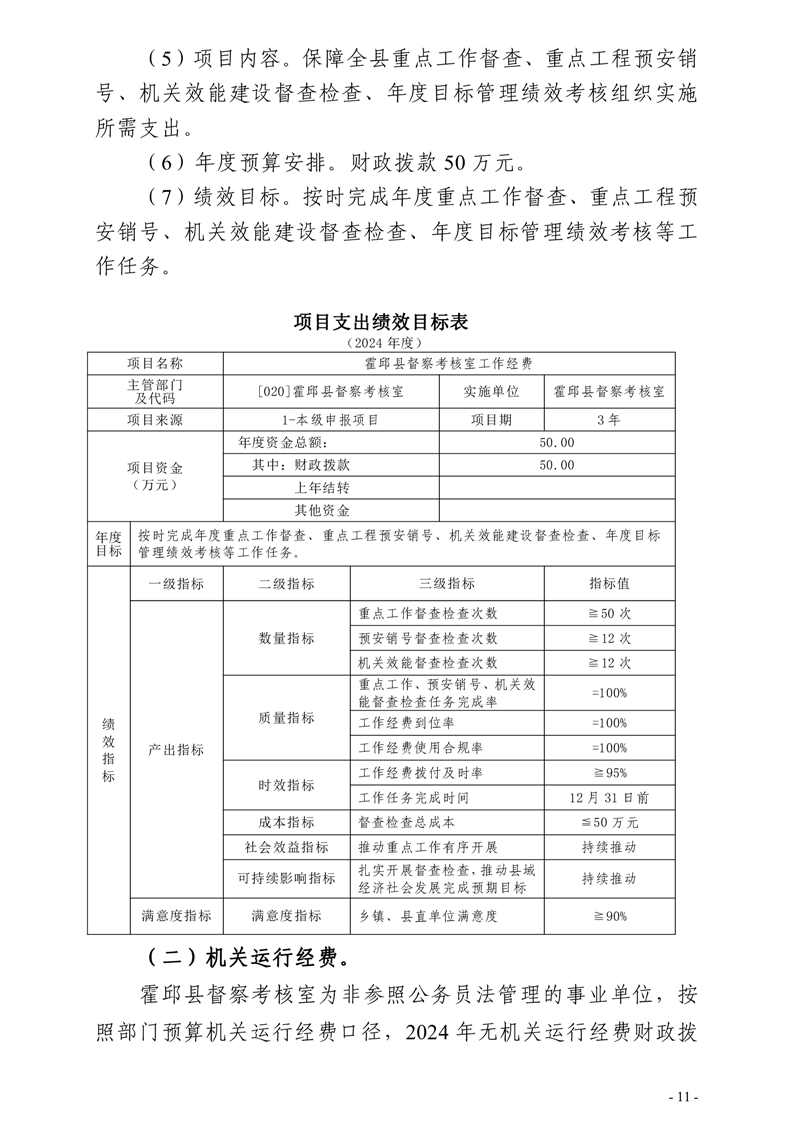 附件2:霍邱县督察考核室2024年部门项目支出绩效目标.pdf