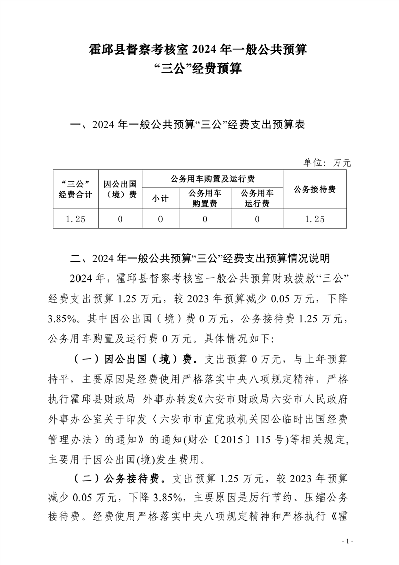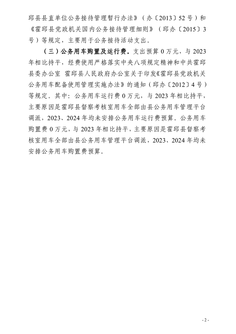 霍邱县督察考核室2024年一般公共预算安排“三公”经费情况