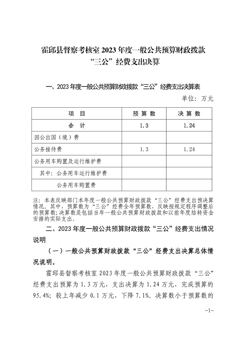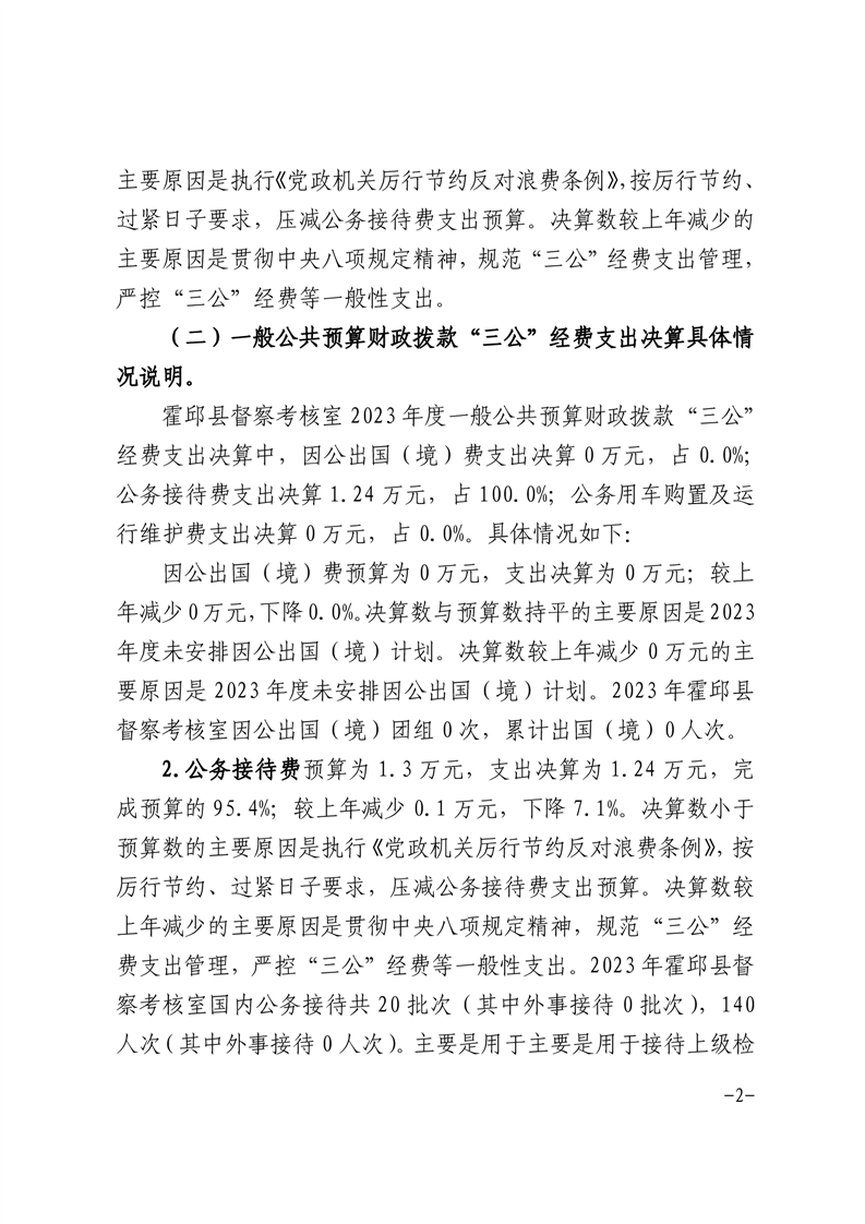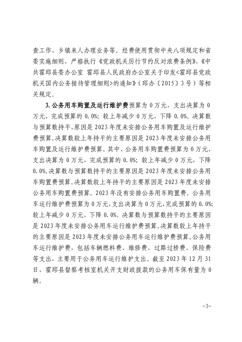 霍邱县督察考核室 2023年度一般公共预算财政拨款“三 公”经费支出决算情况说明