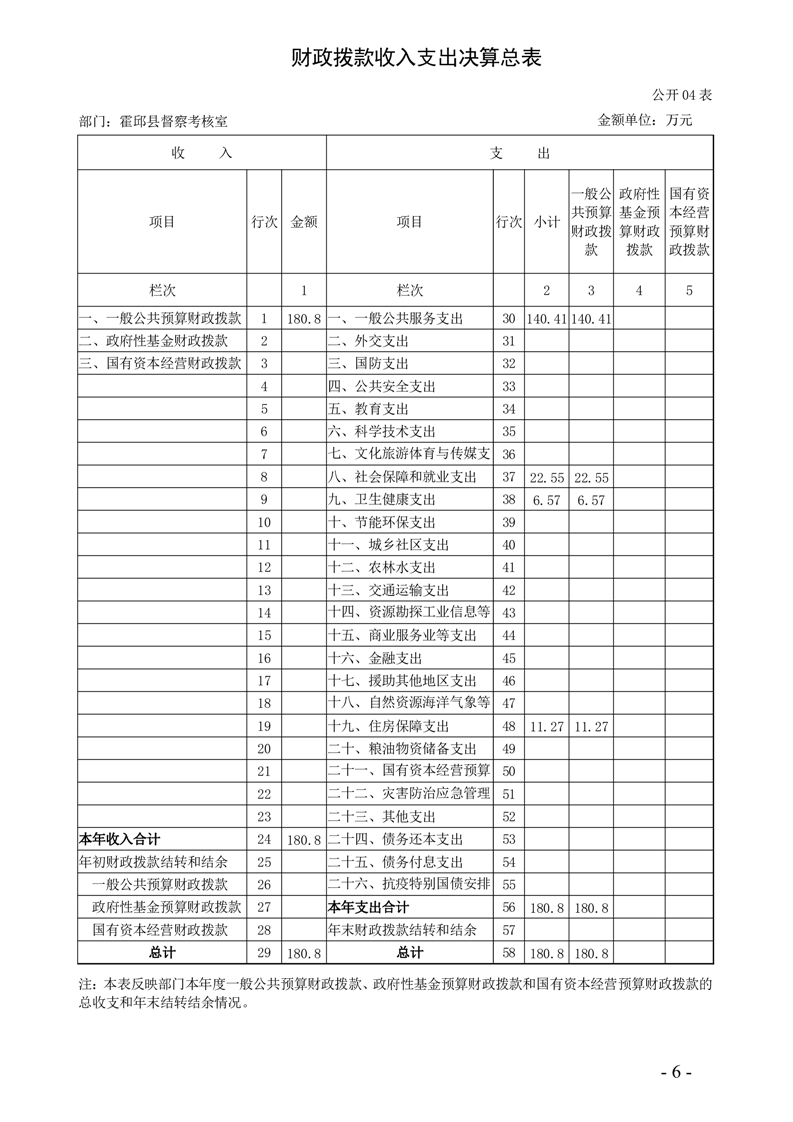 霍邱县督察考核室2024年度部门决算