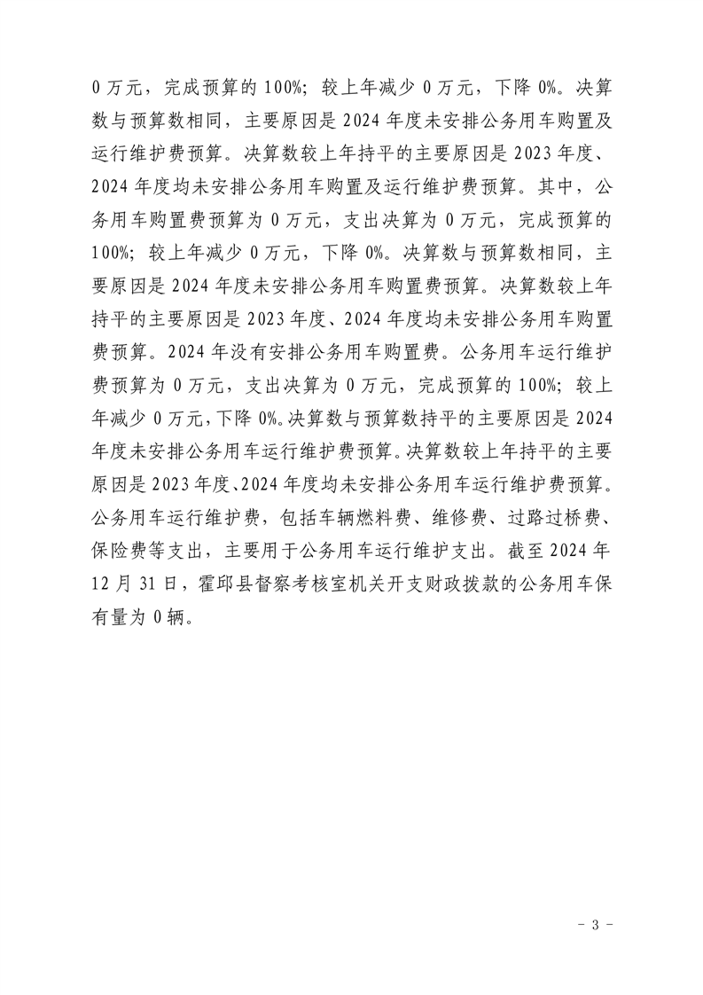 霍邱县督察考核室2024年度一般公共预算财政拨款“三公”经费支出决算