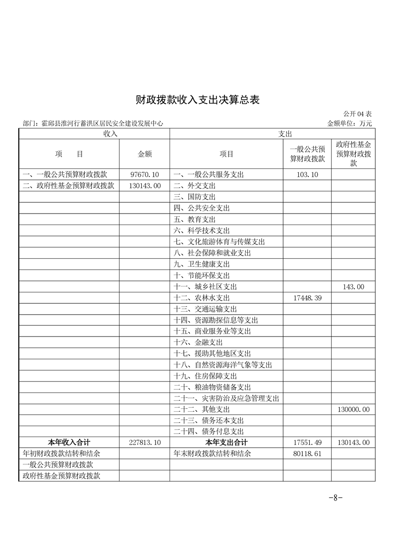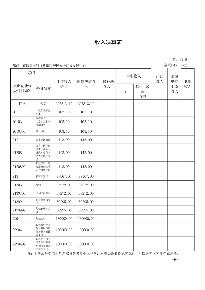 霍邱县淮河行蓄洪区居民安全建设发展中心2019年部门决算