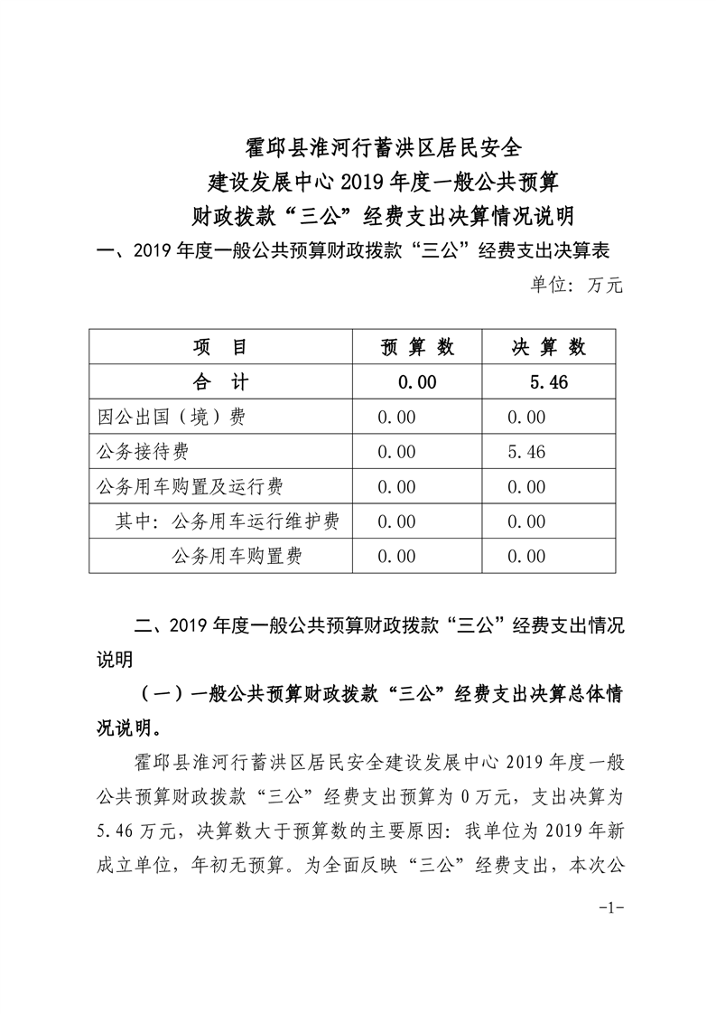 霍邱县淮河行蓄洪区居民安全建设发展中心2019年度一般公共预算财政拨款“三公”经费支出决算情况说明.pdf