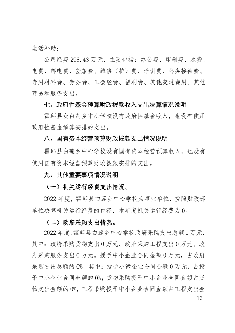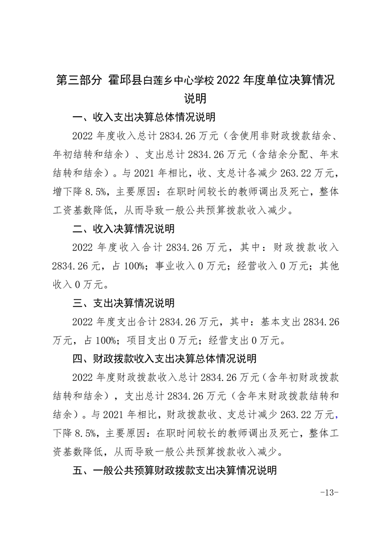 霍邱县白莲乡中心学校 2022 年度单位决算