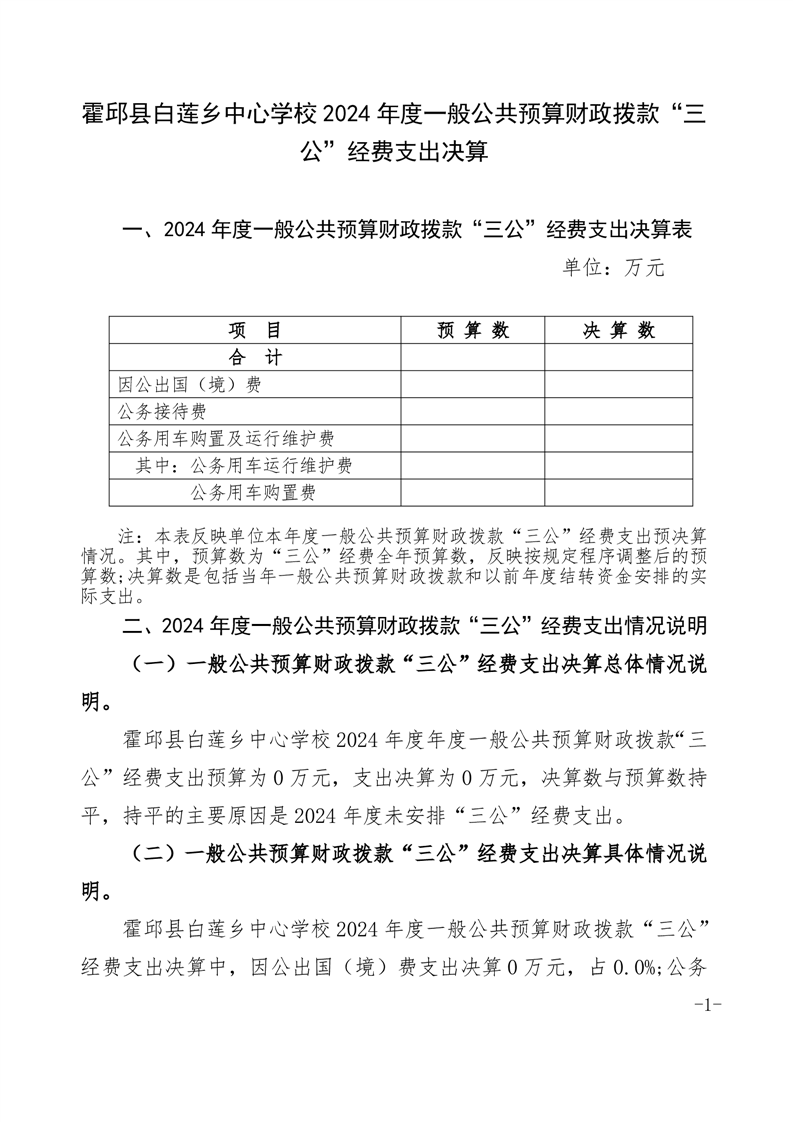 霍邱县白莲乡中心学校2024年度一般公共预算财政拨款“三公”经费支出决算