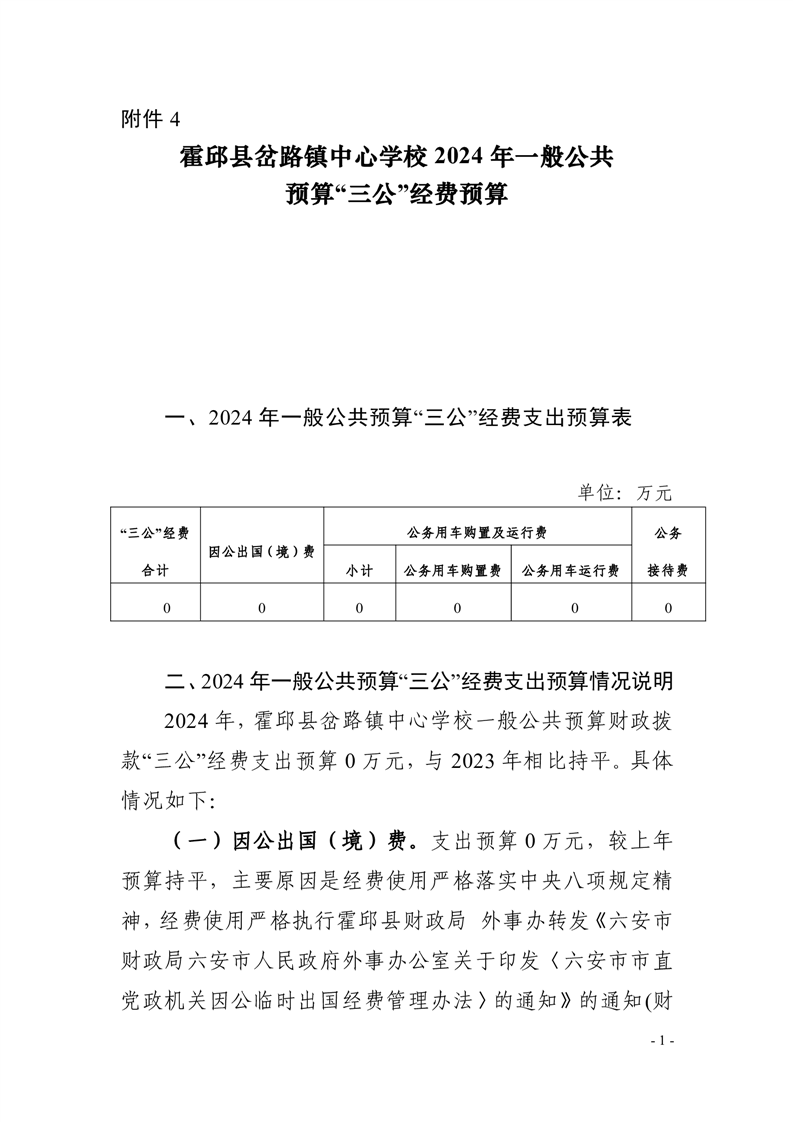 霍邱县岔路镇中心学校2024年一般公共预算“三公”经费预算
