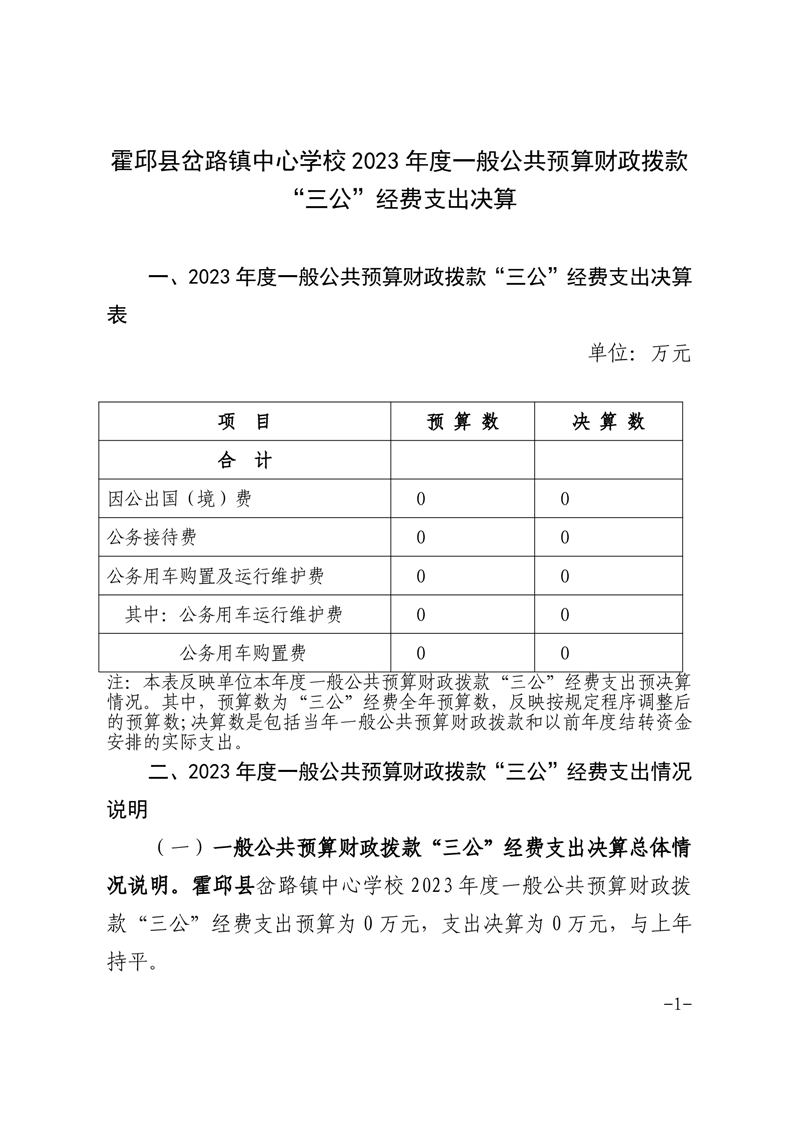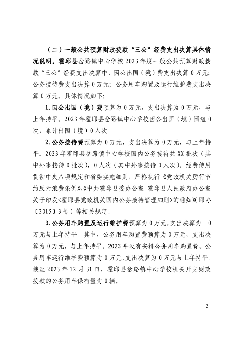 霍邱县岔路镇中心学校 2023 年度一般公共预算财政拨款“三公” 经费支出决算