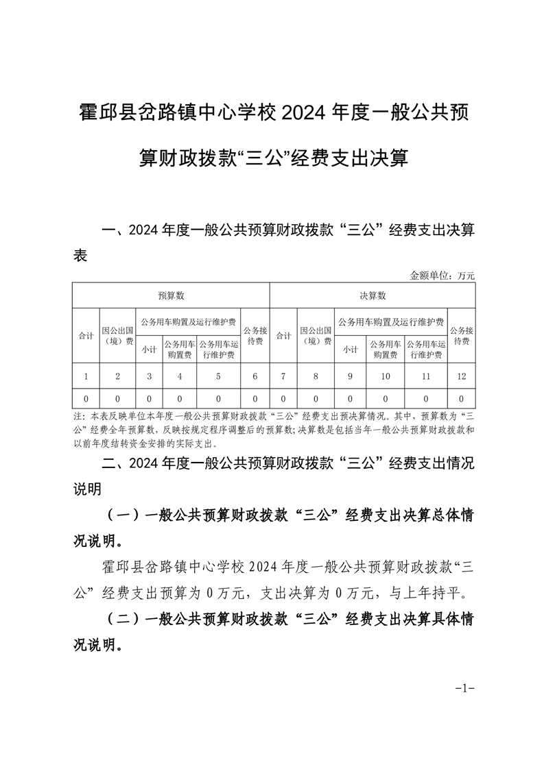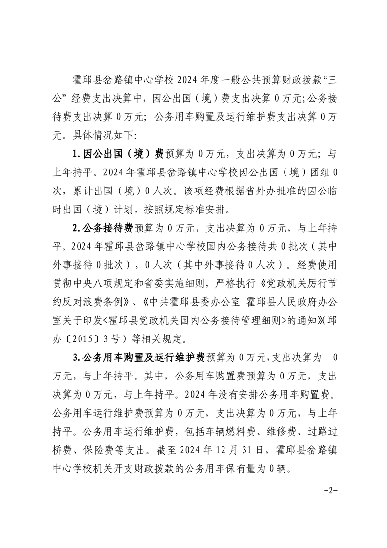 霍邱县岔路镇中心学校 2024 年度一般公共预算财政拨款“三公”经费支出决算