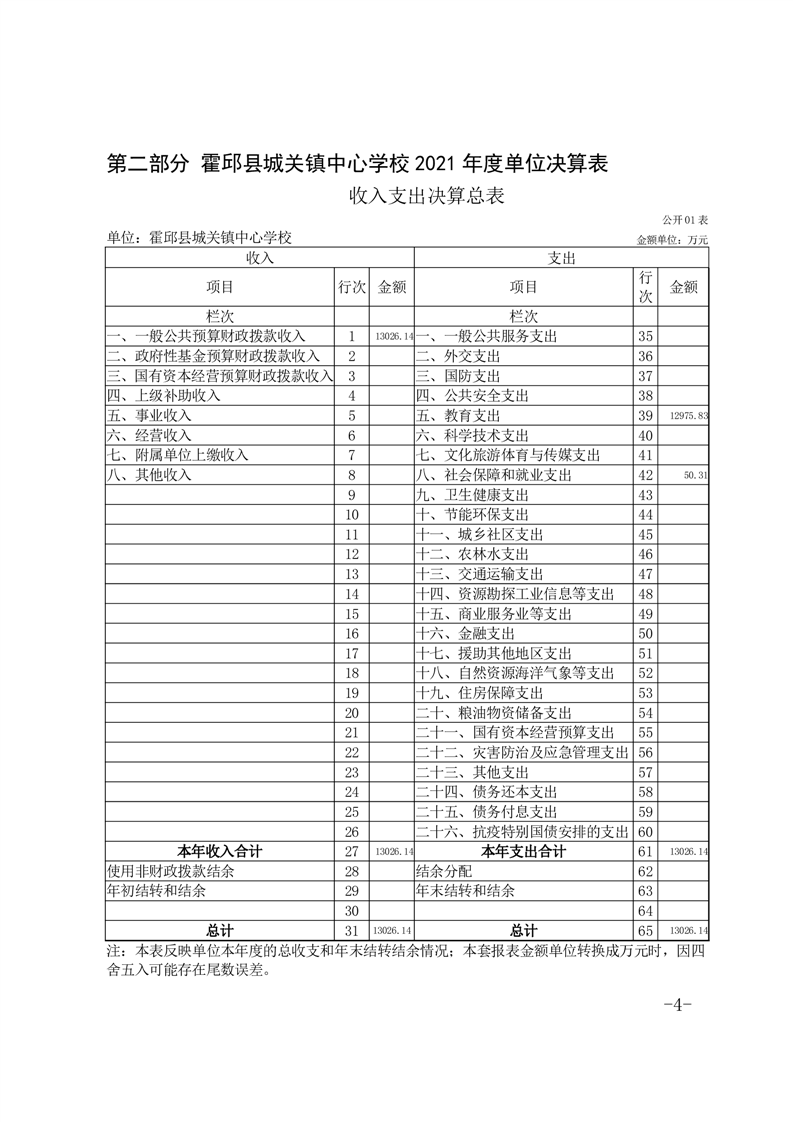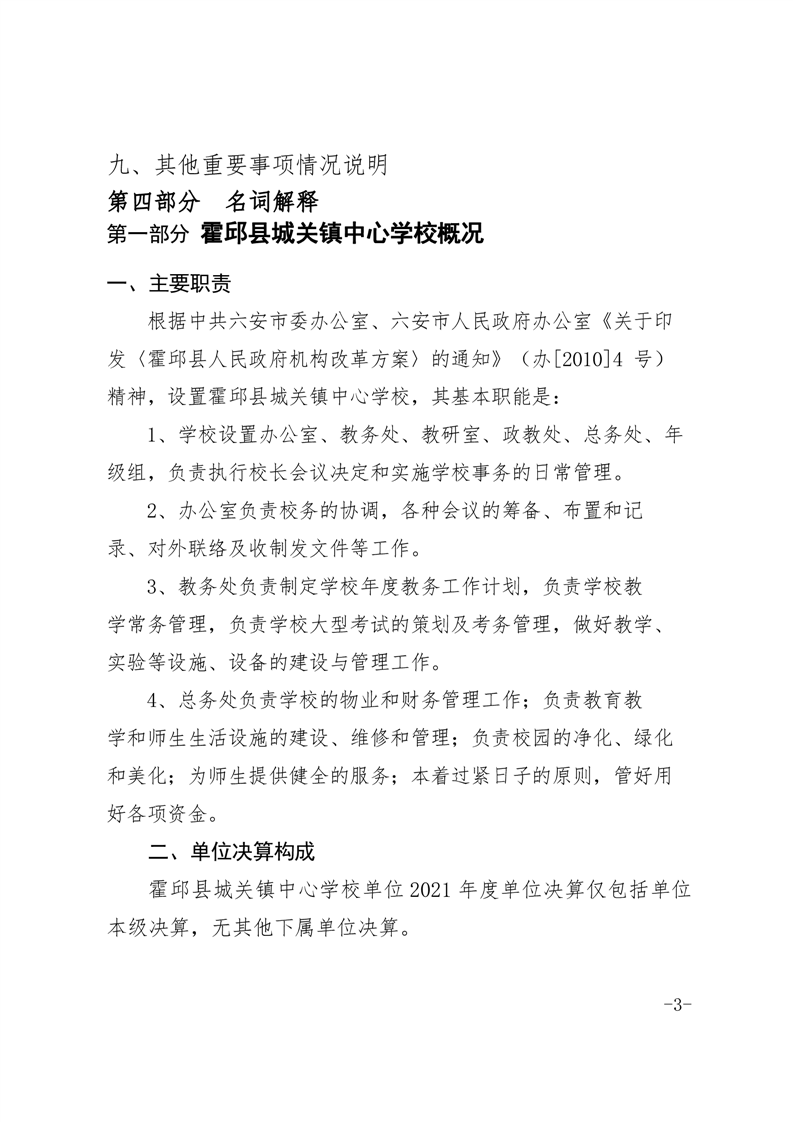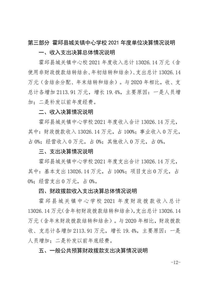 霍邱县城关镇中心学校 2021 年度单位决算公开