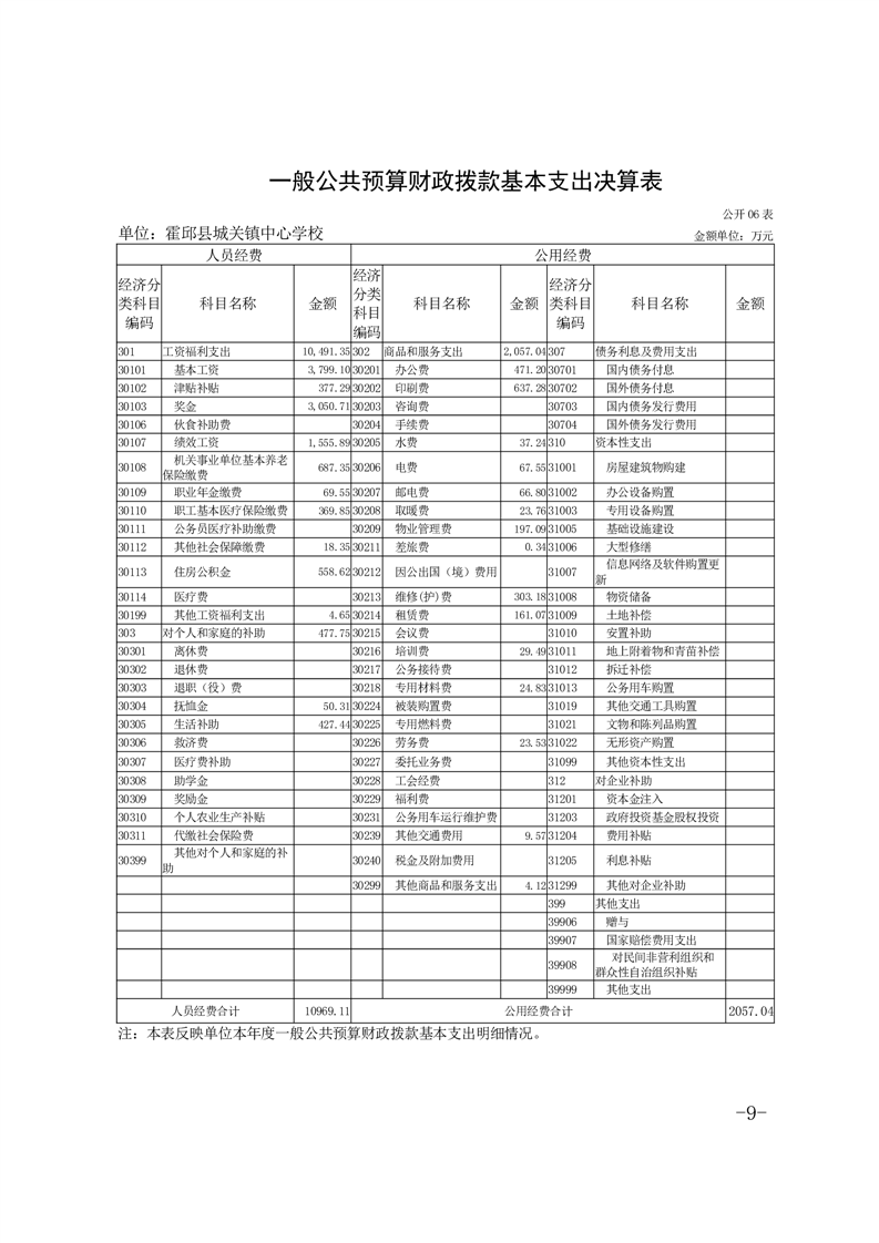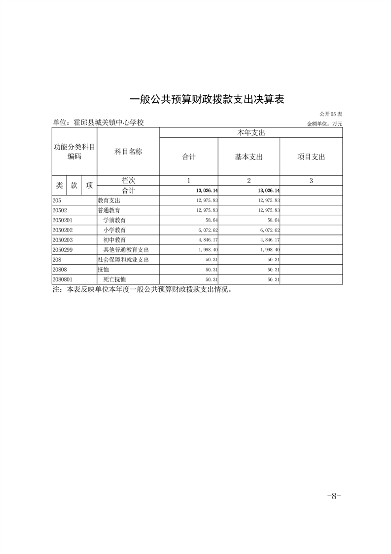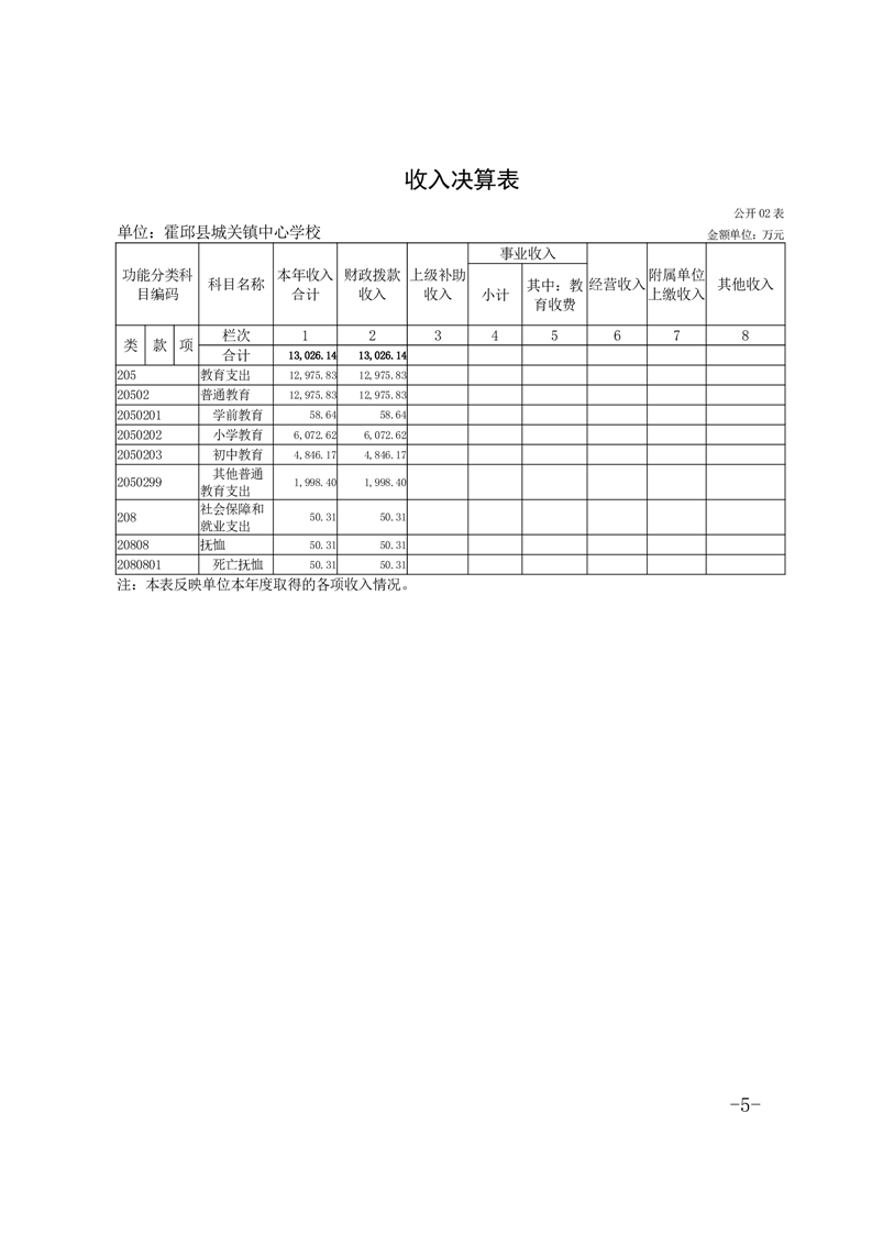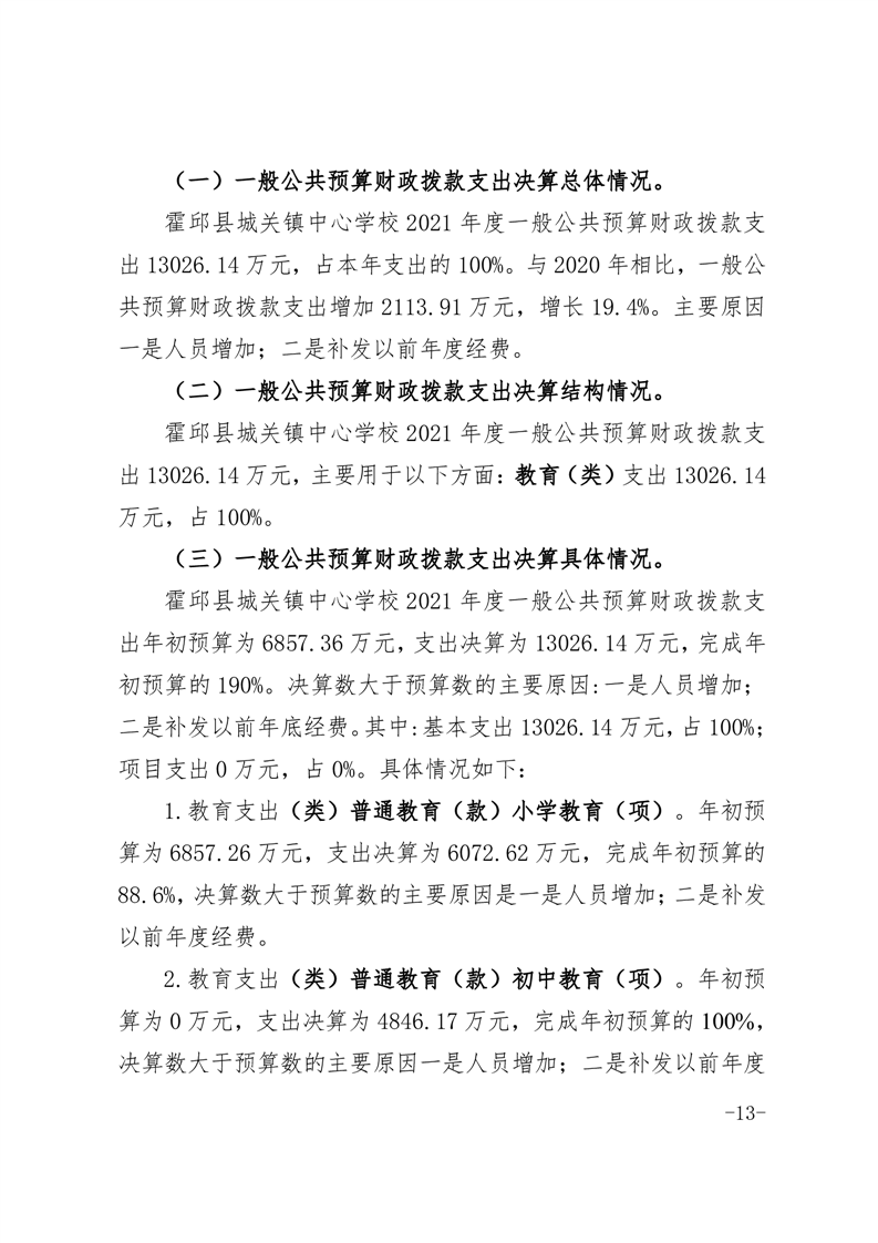 霍邱县城关镇中心学校 2021 年度单位决算公开