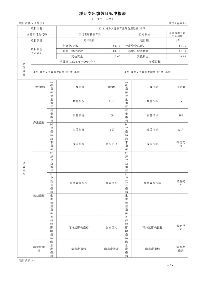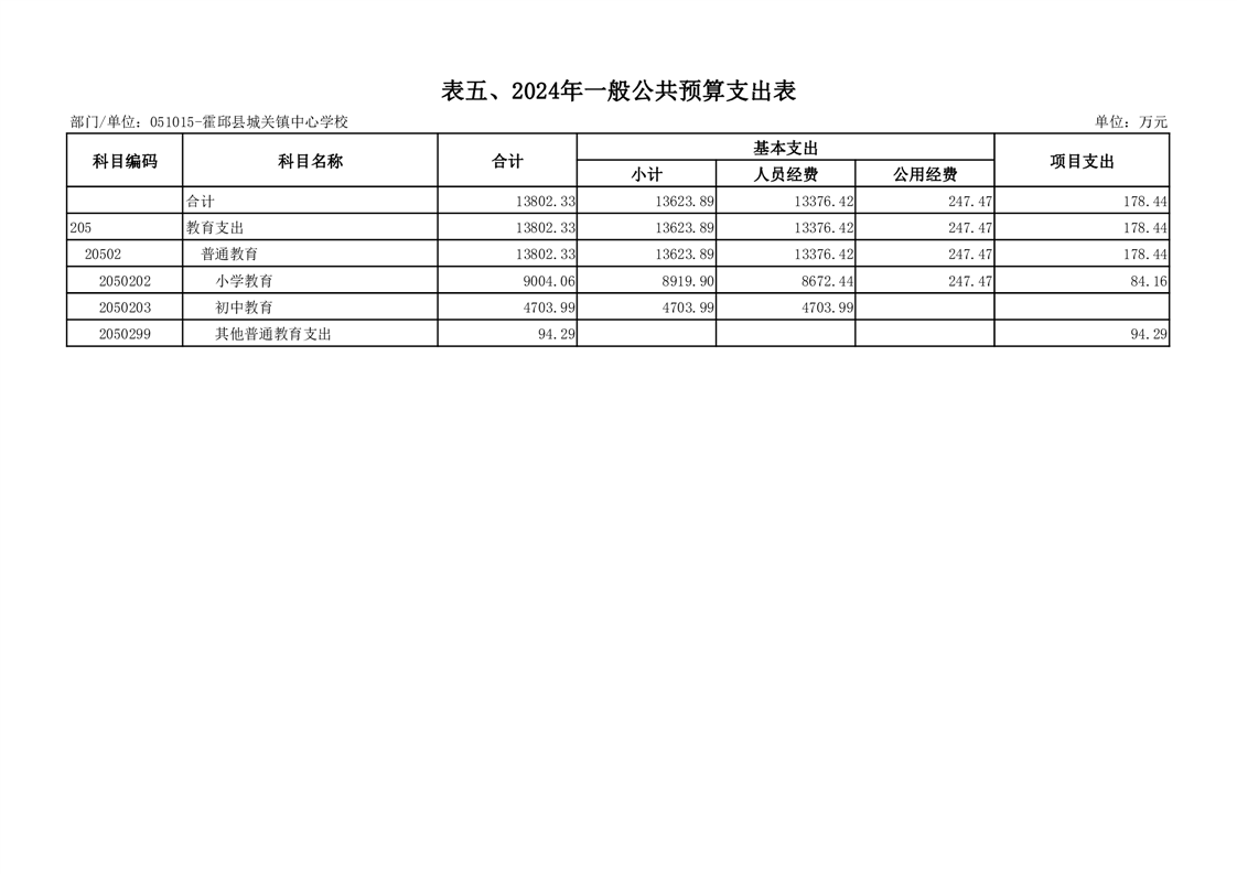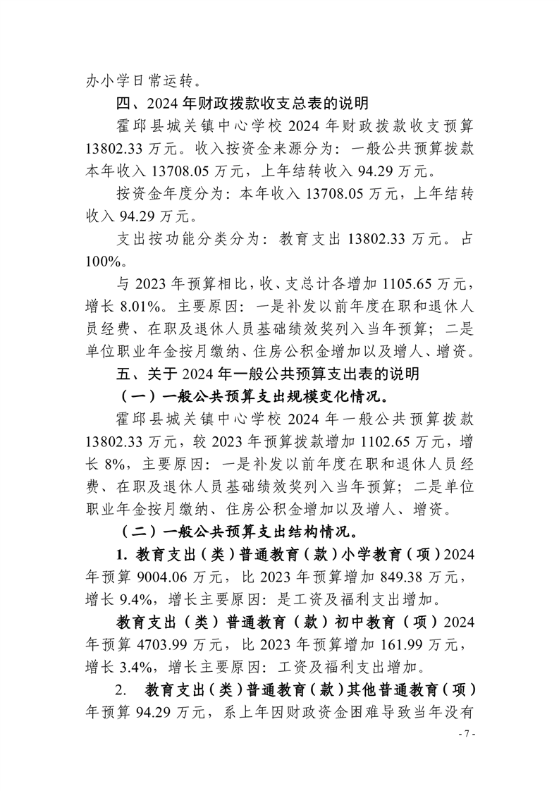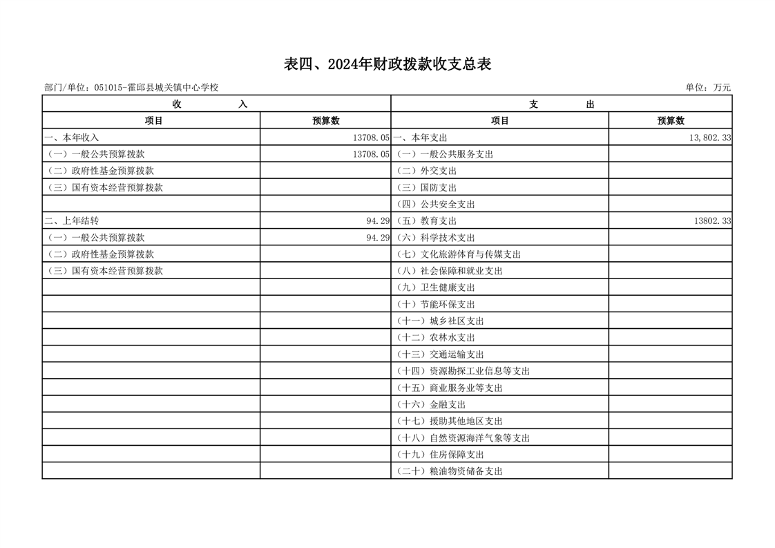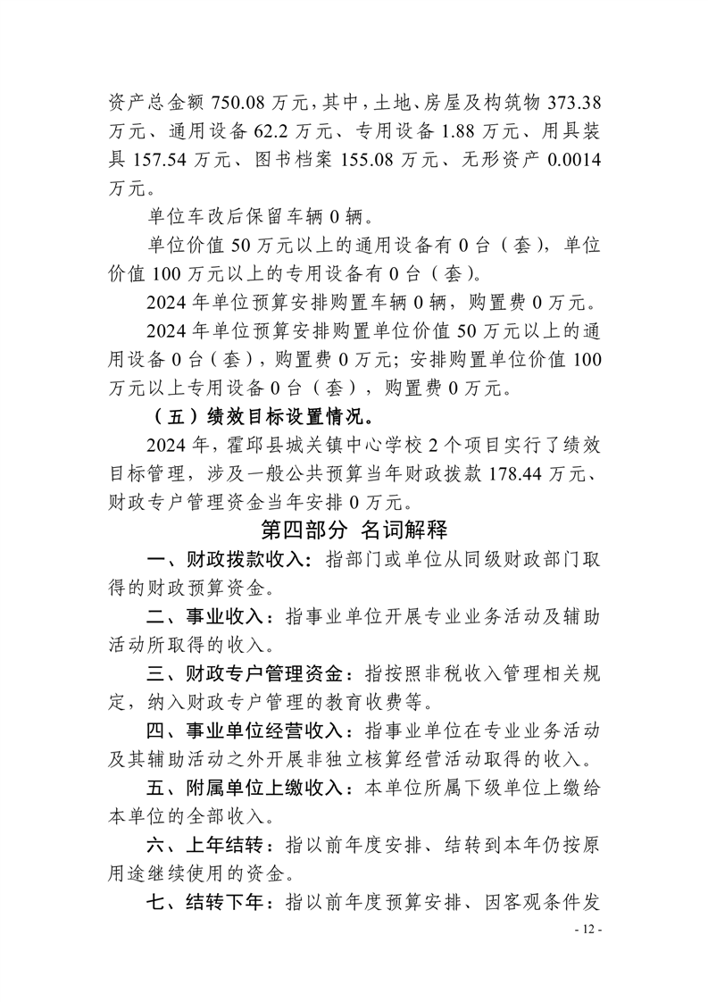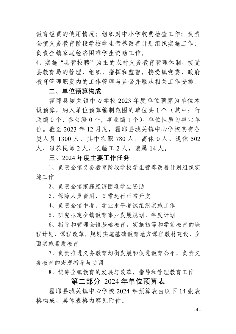 霍邱县城关镇中心学校 2024 年单位预算公开