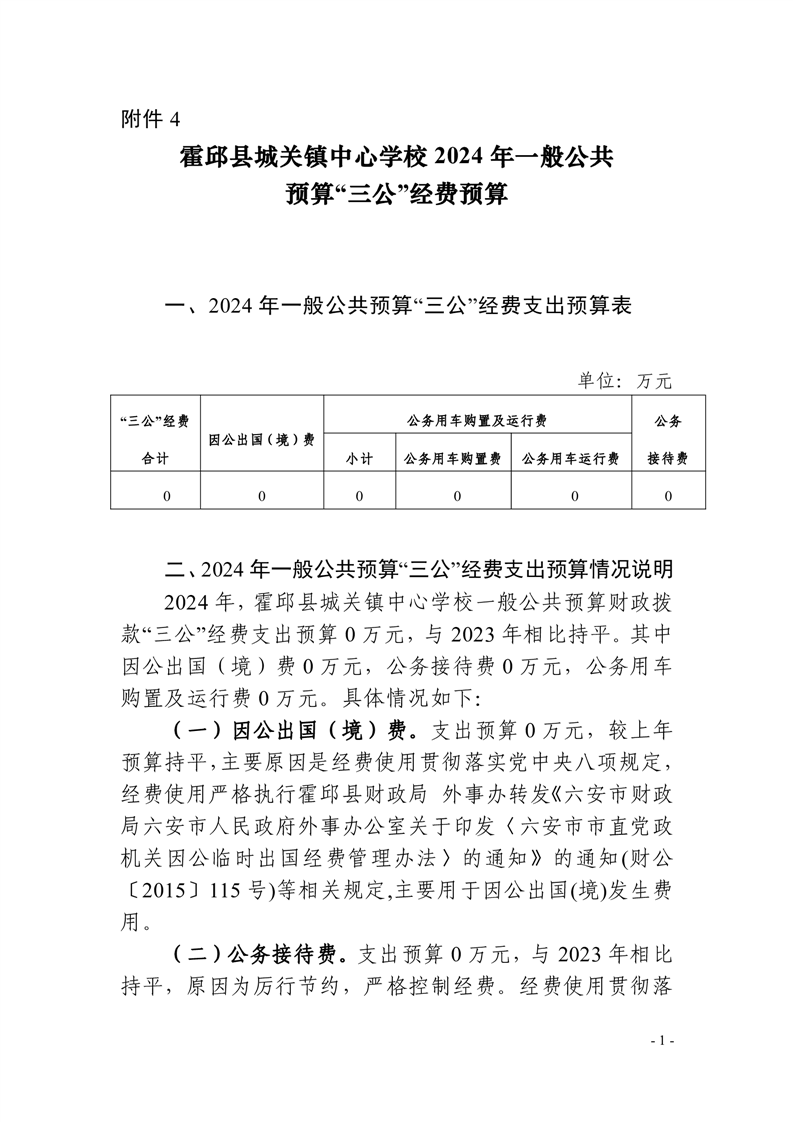 霍邱县城关镇中心学校 2024 年一般公共预算“三公”经费预算