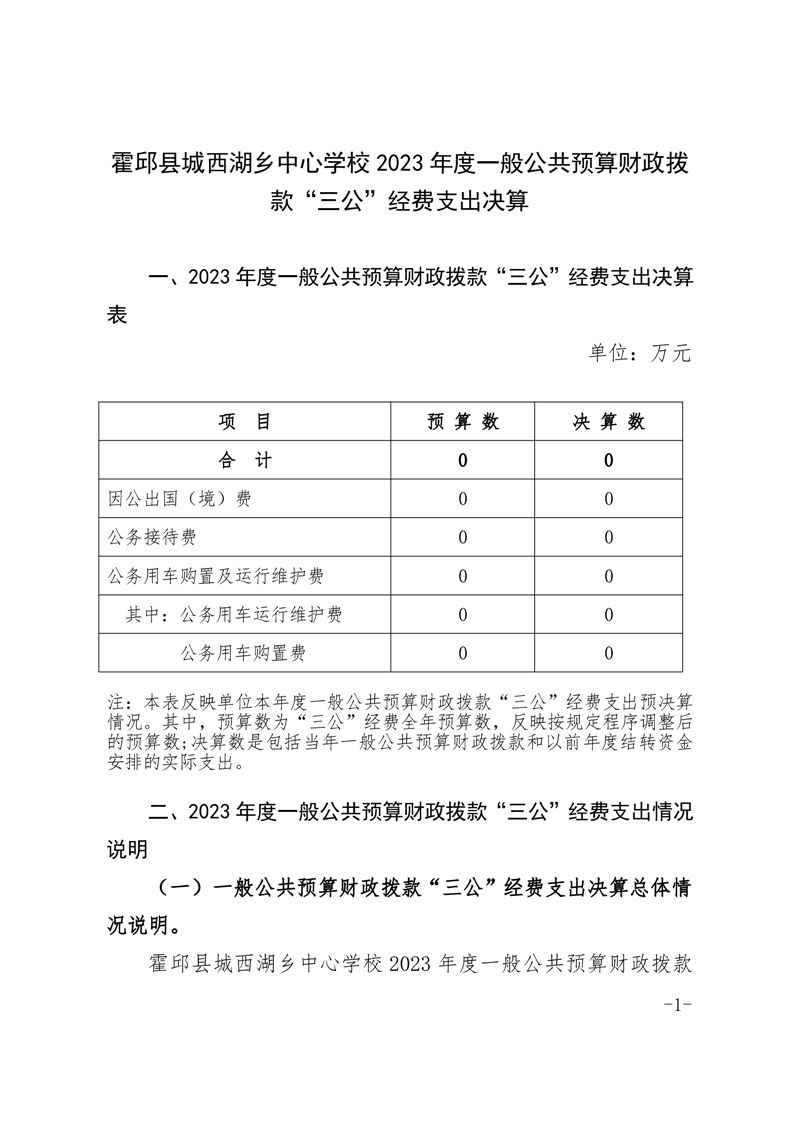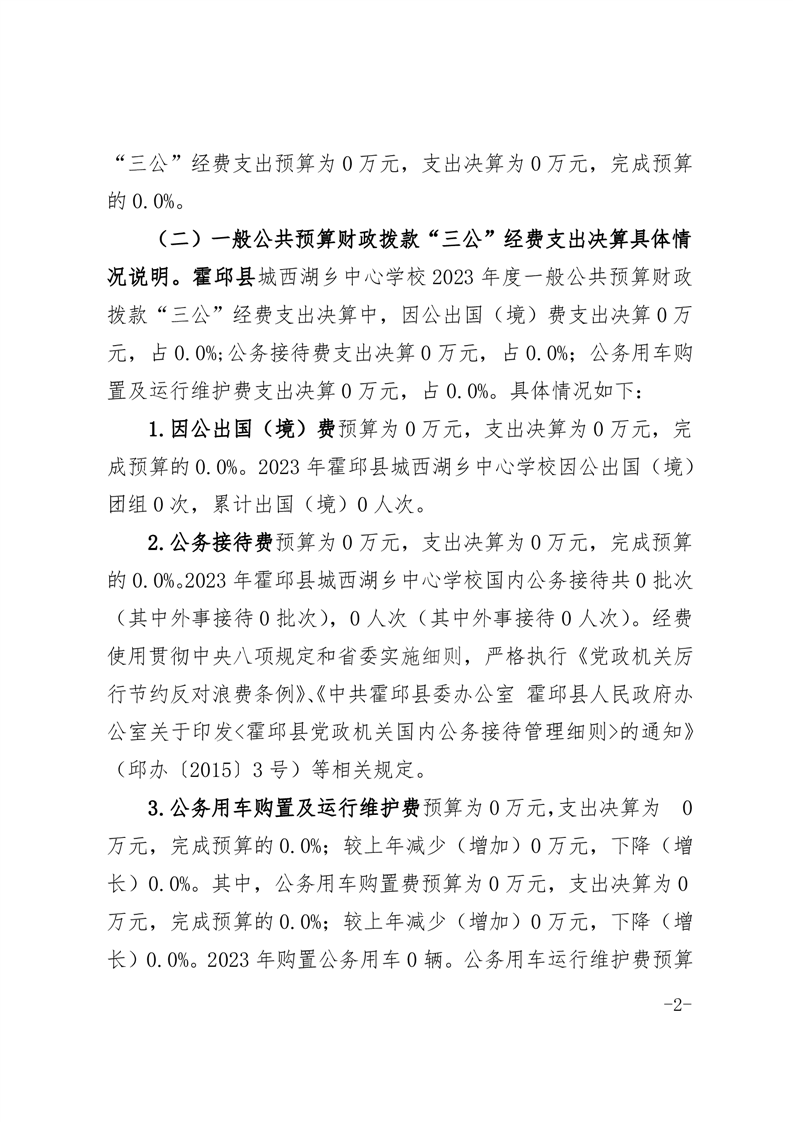 霍邱县城西湖乡中心学校 2023 年度一般公共预算财政拨款“三公” 经费支出决算