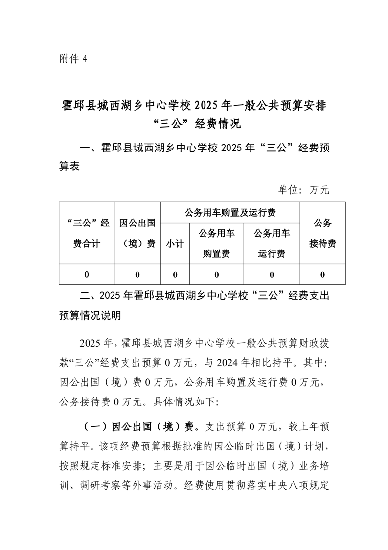 霍邱县城西湖乡中心学校 2025 年一般公共预算安排“三公” 经费情况