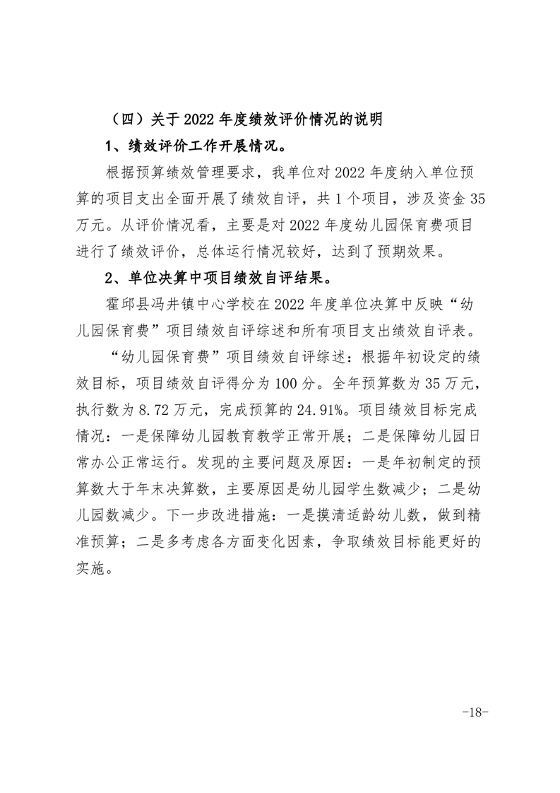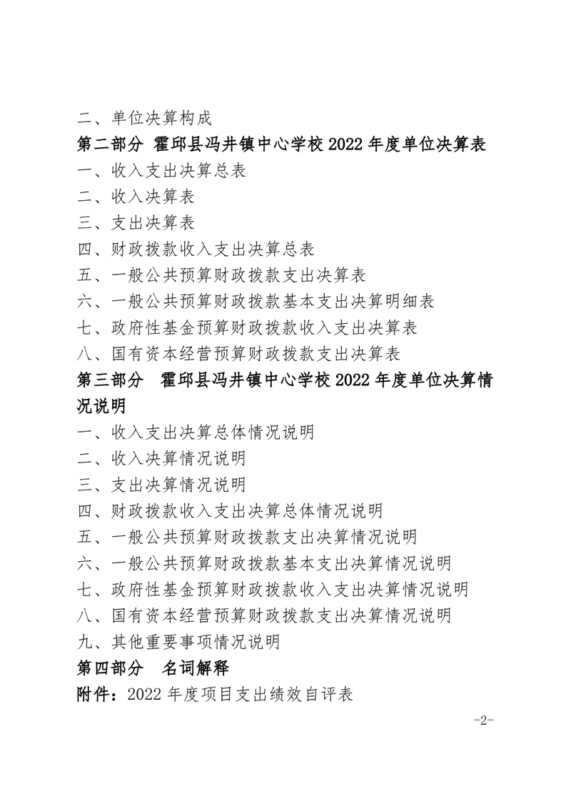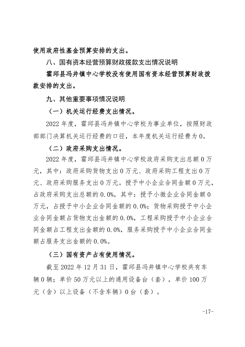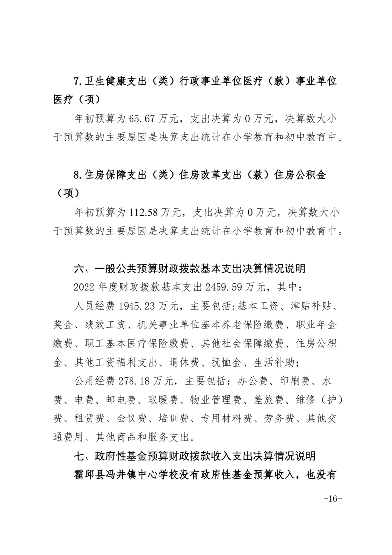 霍邱县冯井镇中心学校 2022 年度单位决算