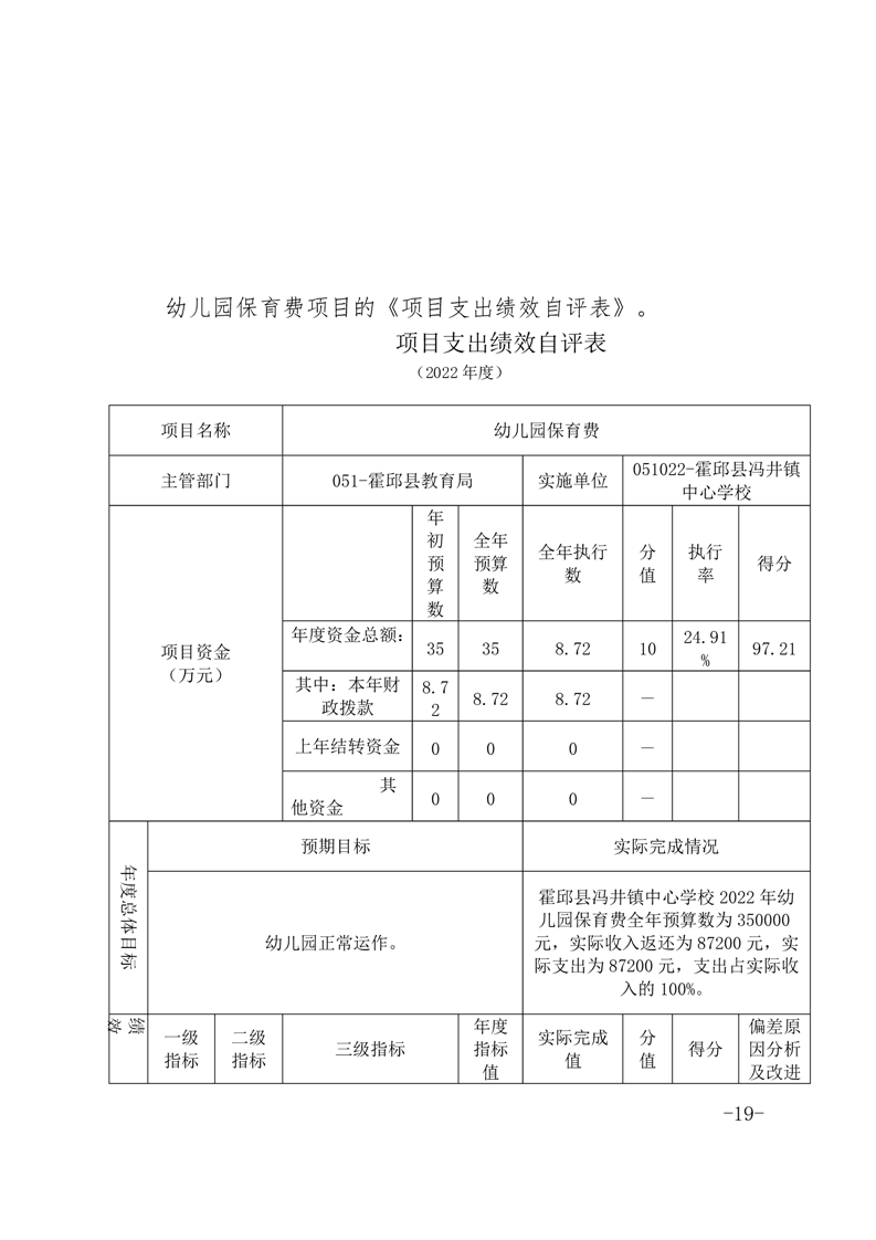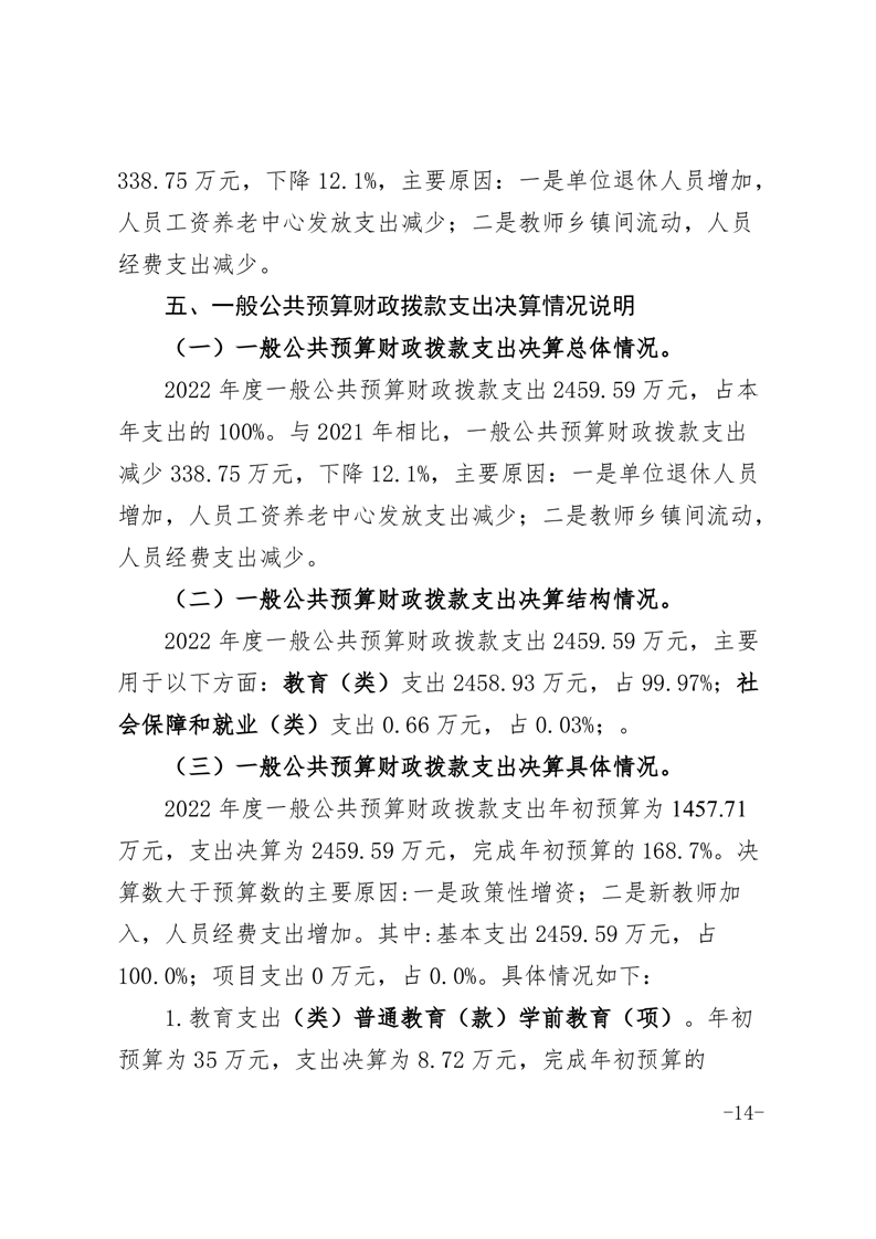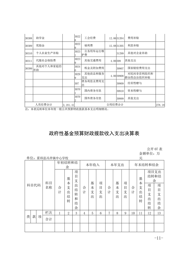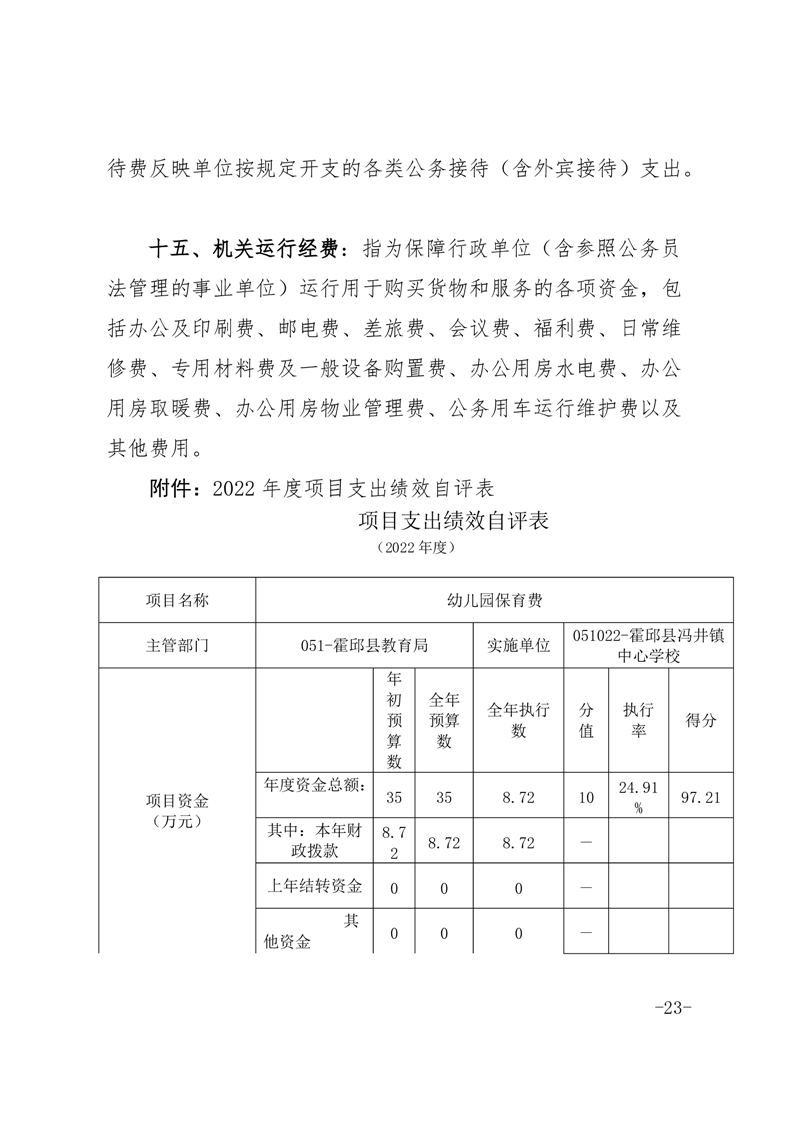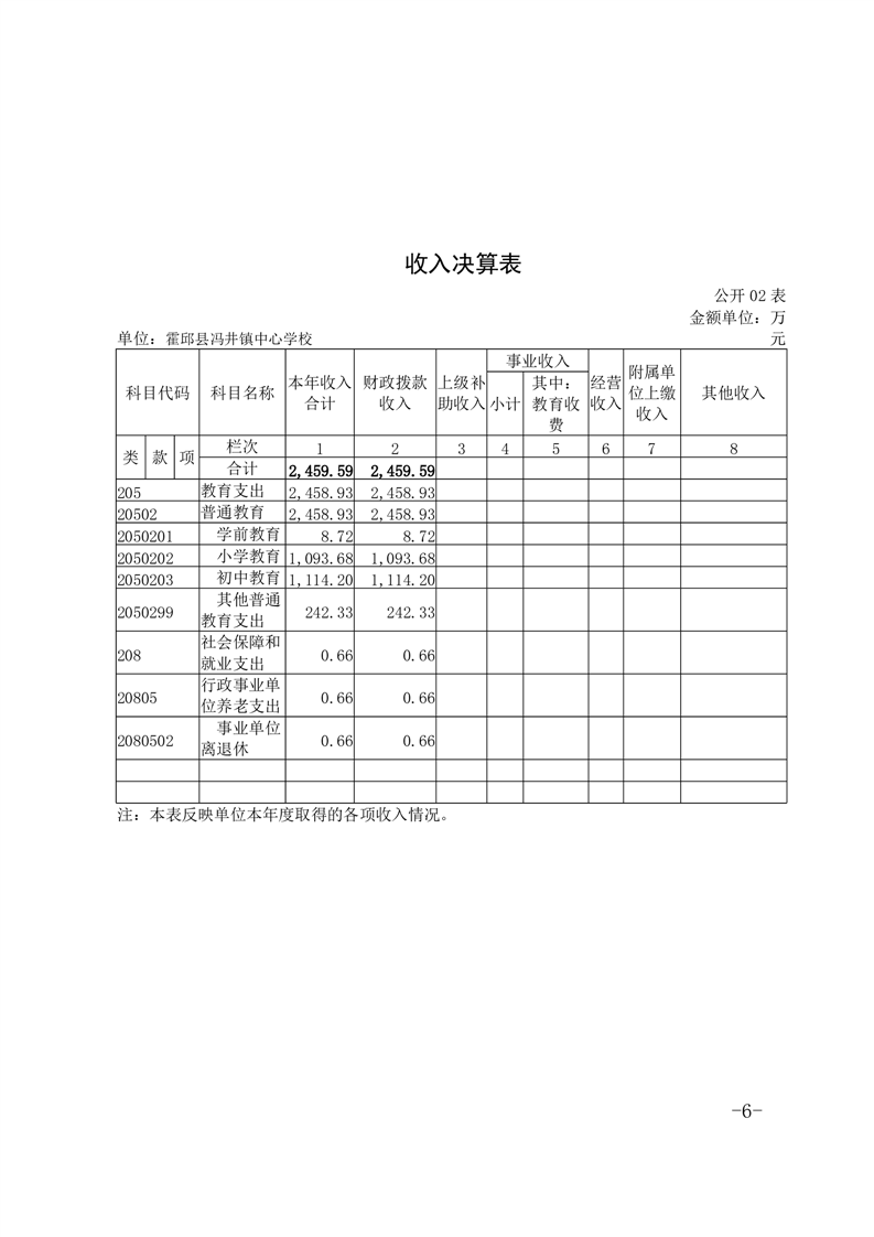 霍邱县冯井镇中心学校 2022 年度单位决算