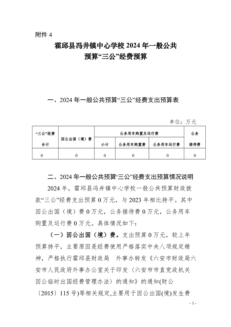 霍邱县冯井镇中心学校 2024 年一般公共预算“三公”经费预算