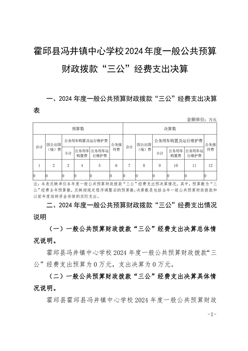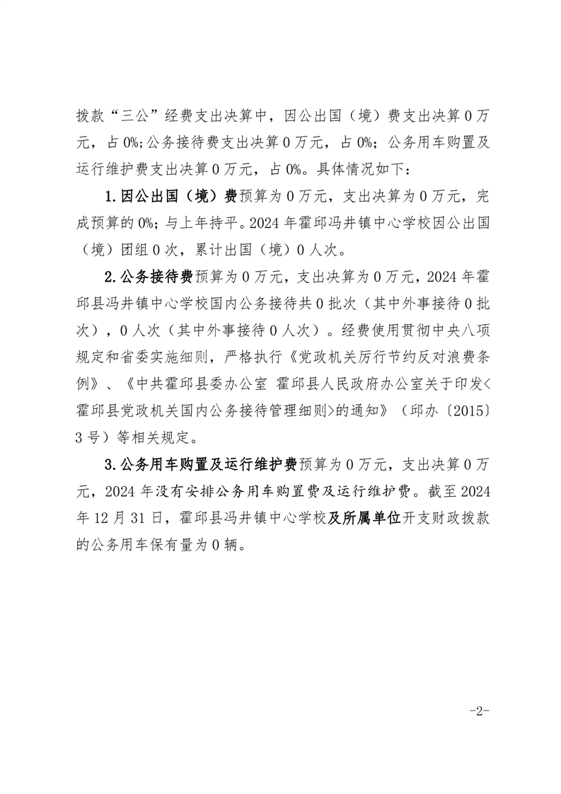 霍邱县冯井镇中心学校2024年度一般公共预算财政拨款“三公” 经费支出决算