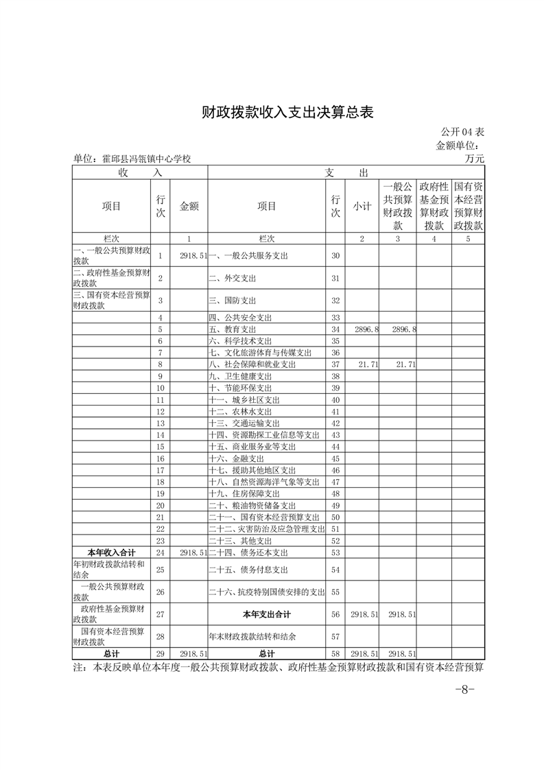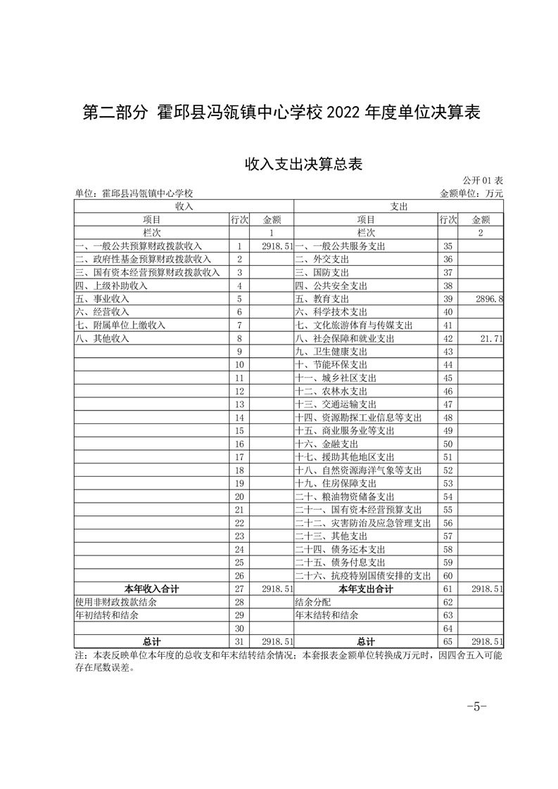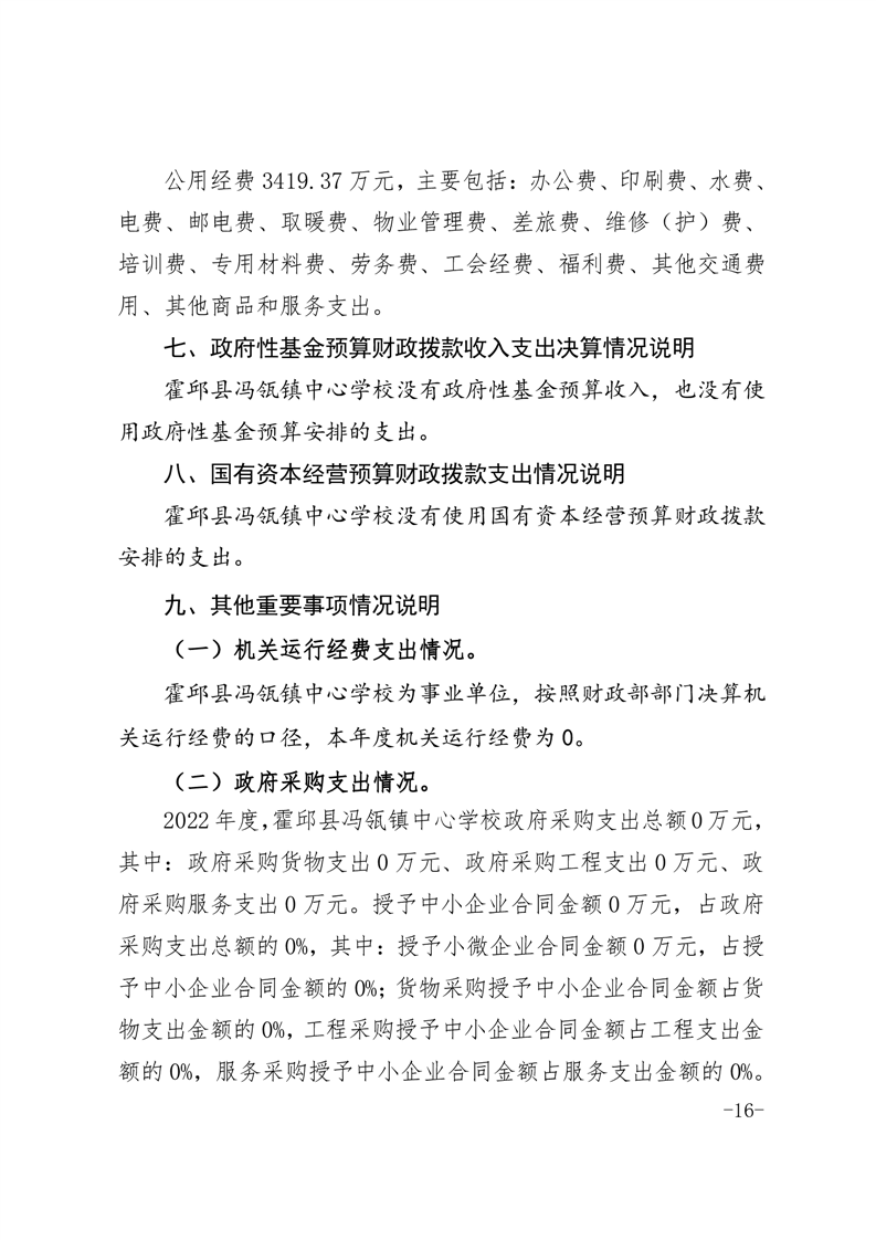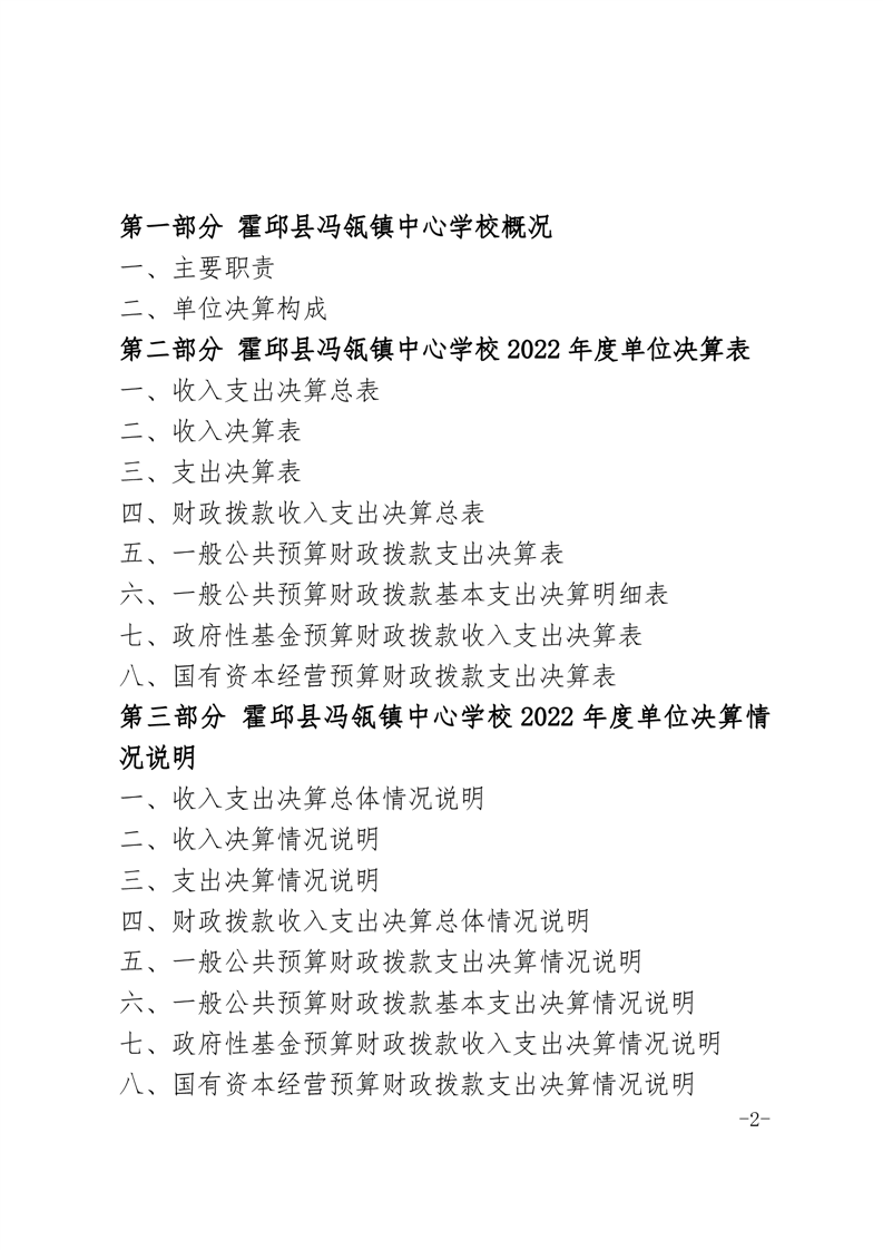 霍邱县冯瓴镇中心学校 2022 年度单位决算