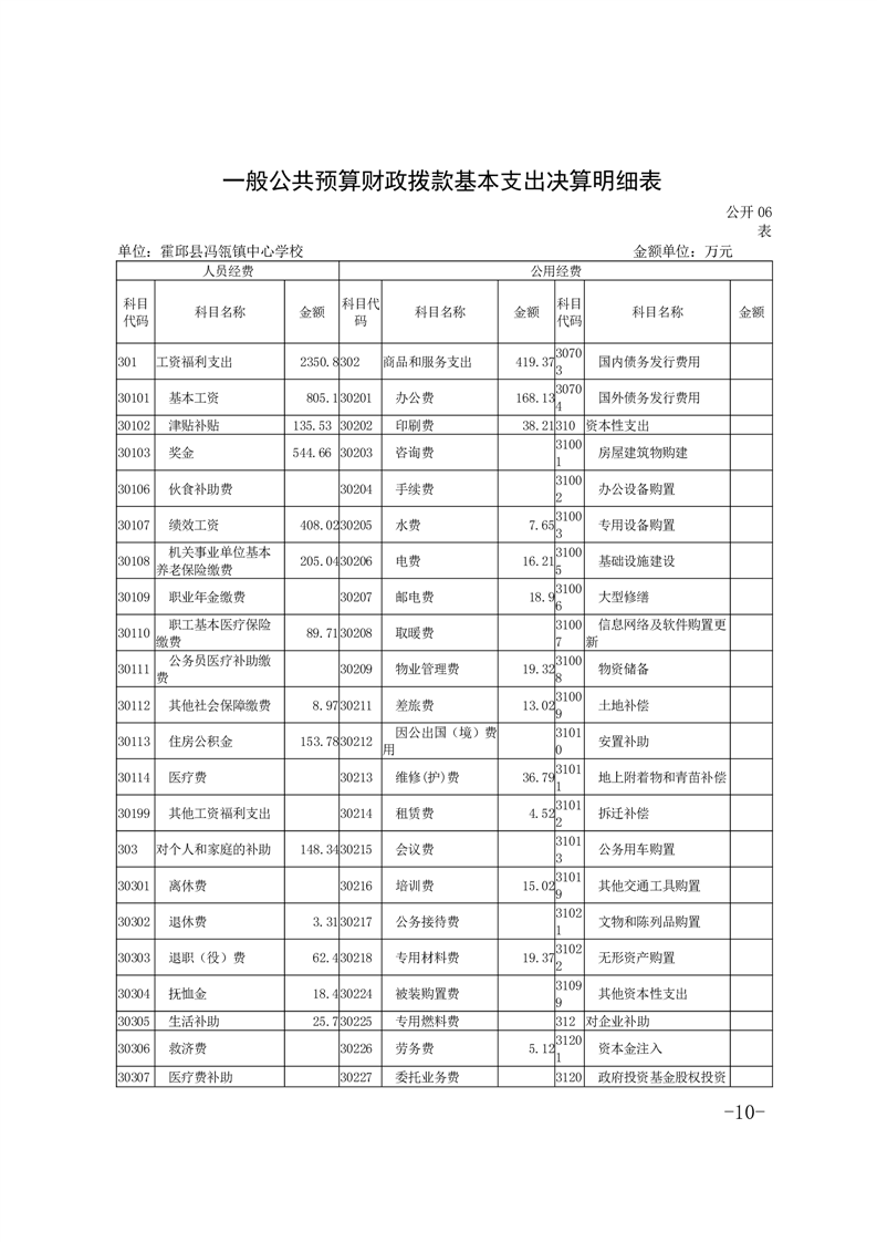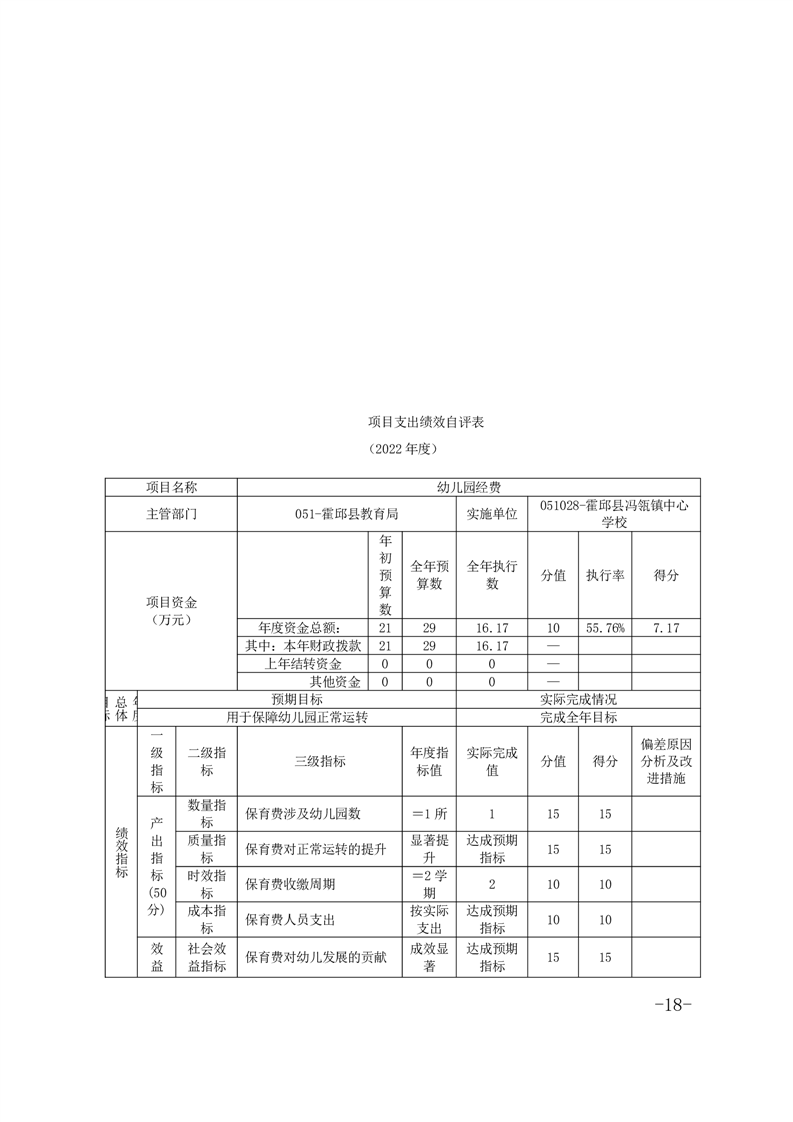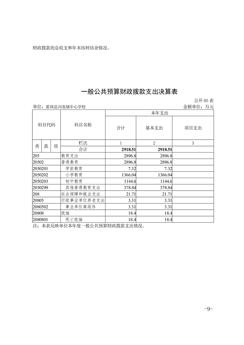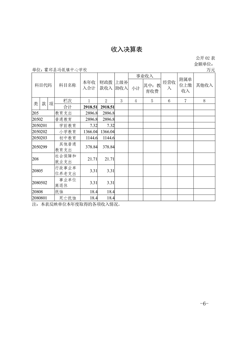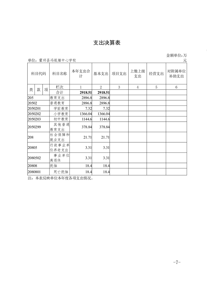 霍邱县冯瓴镇中心学校 2022 年度单位决算