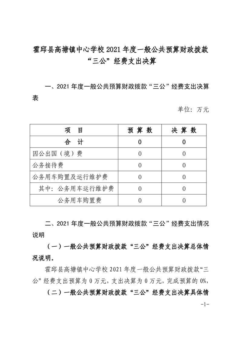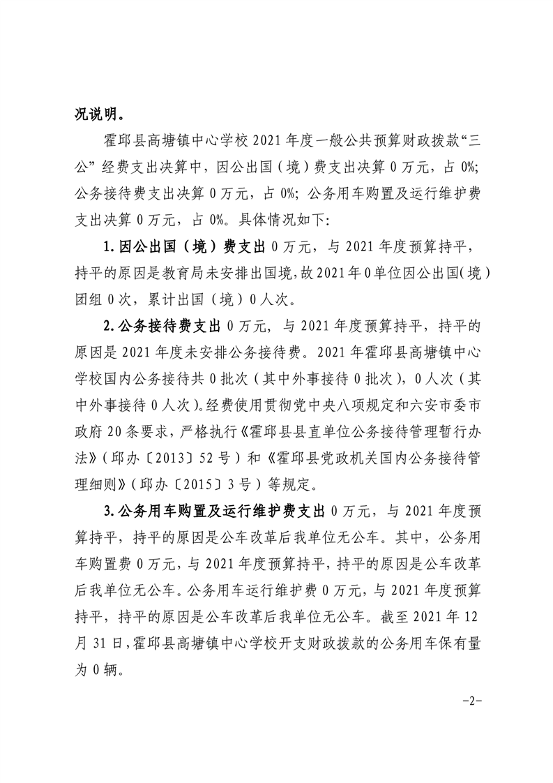 霍邱县高塘镇中心学校2021年度一般公共预算财政拨款“三公”经费支出决算