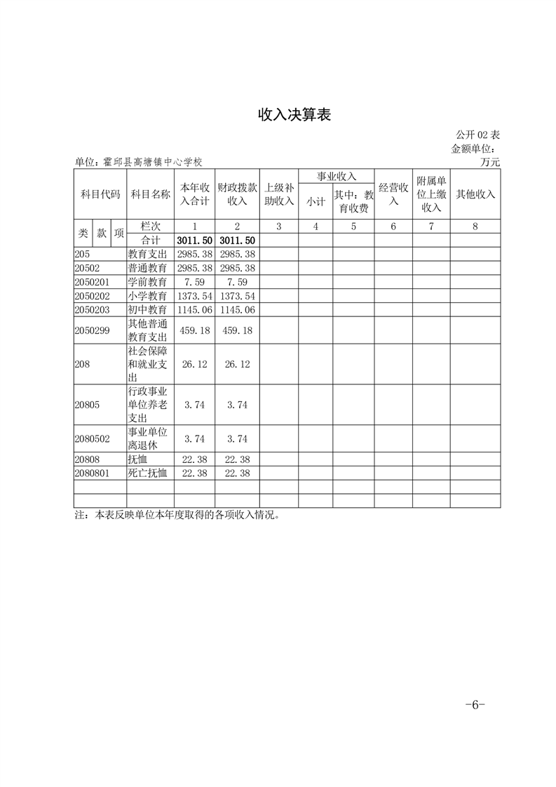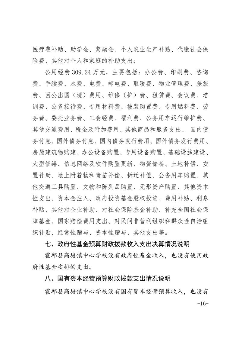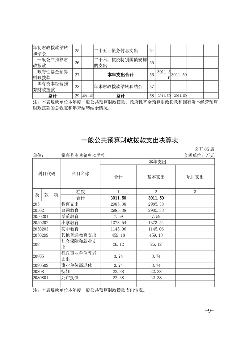 霍邱县高塘镇中心学校 2022 年度单位决算