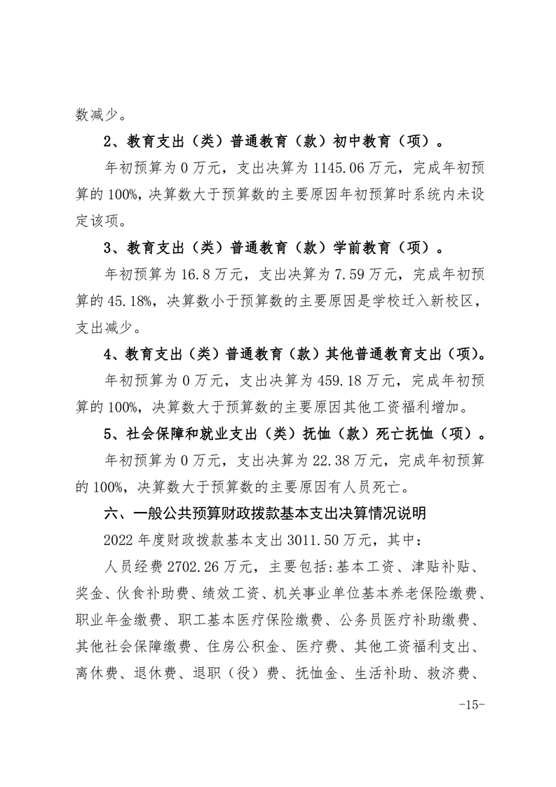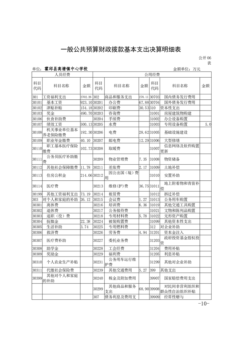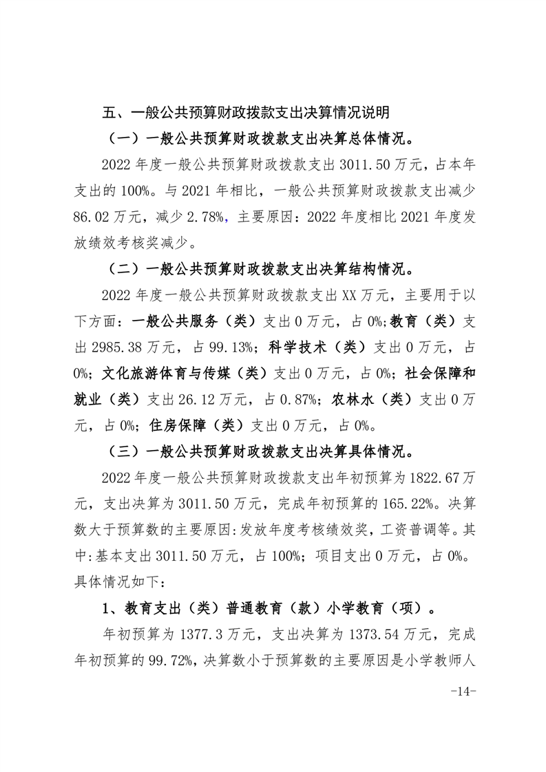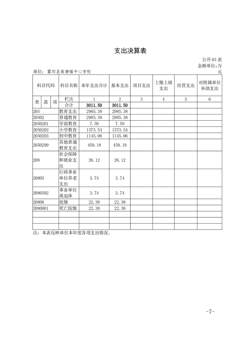 霍邱县高塘镇中心学校 2022 年度单位决算