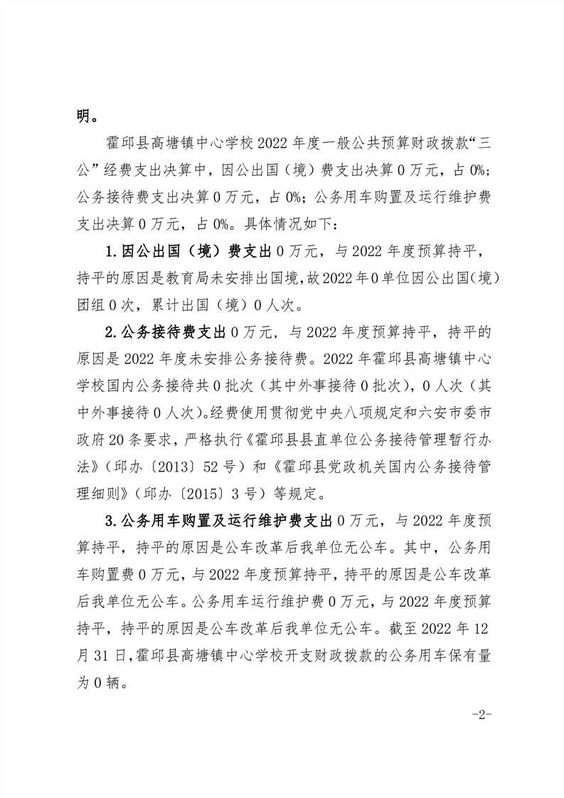 霍邱县高塘镇中心学校 2022 年度一般公共预算财政拨款
