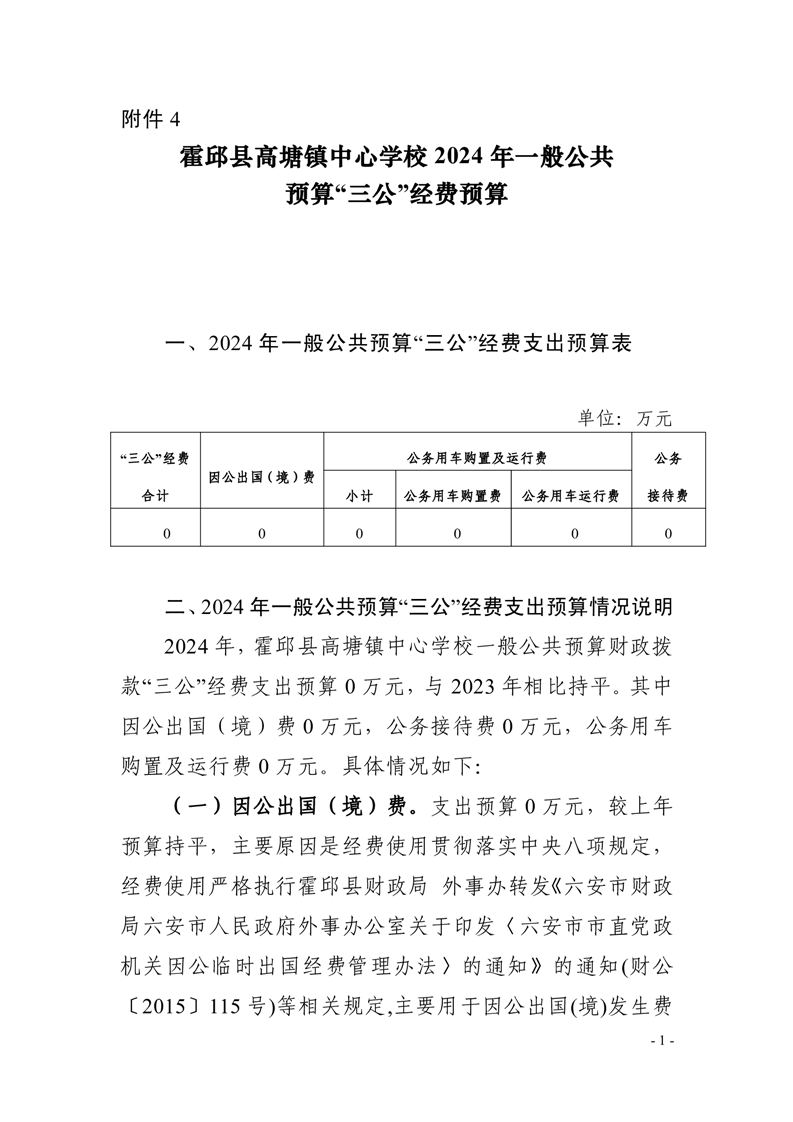 霍邱县高塘镇中心学校2024年一般公共预算“三公”经费预算