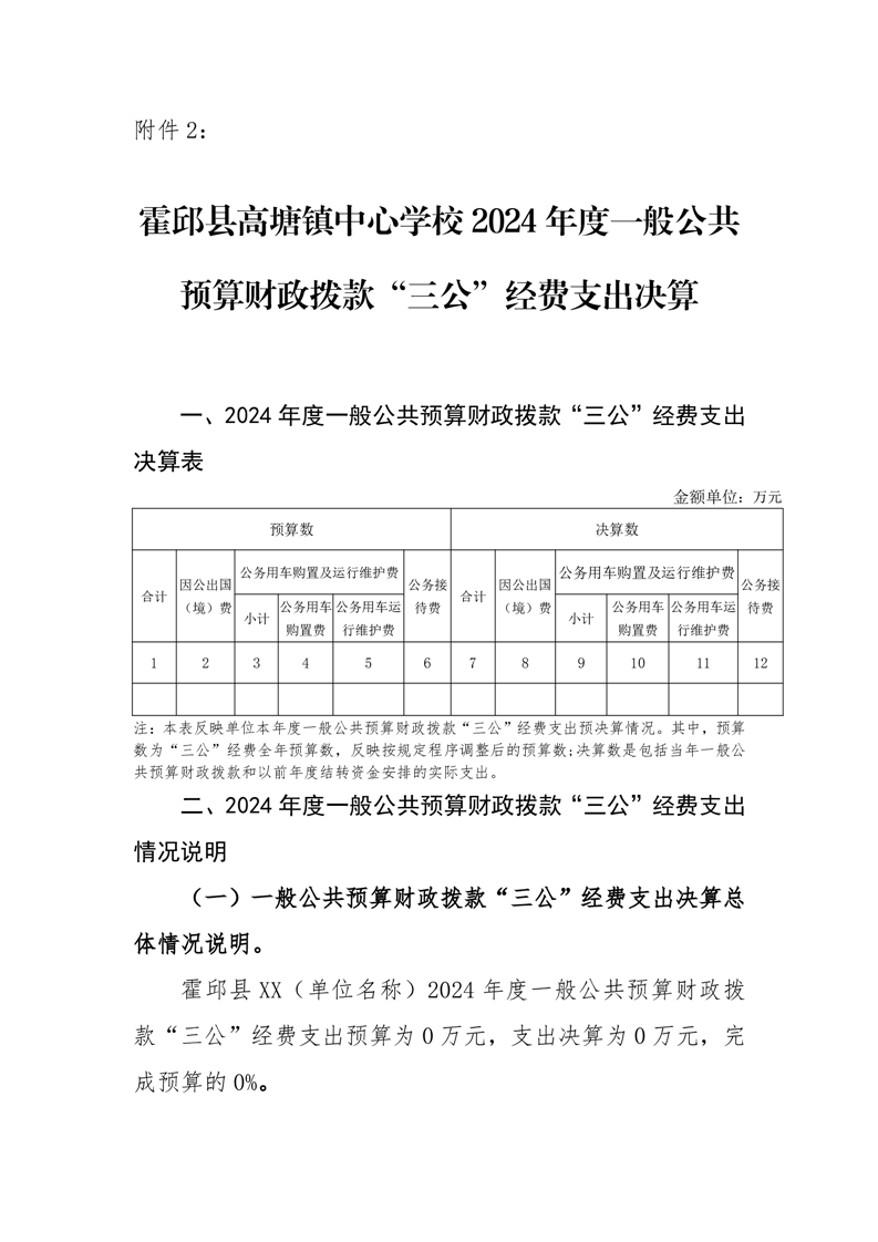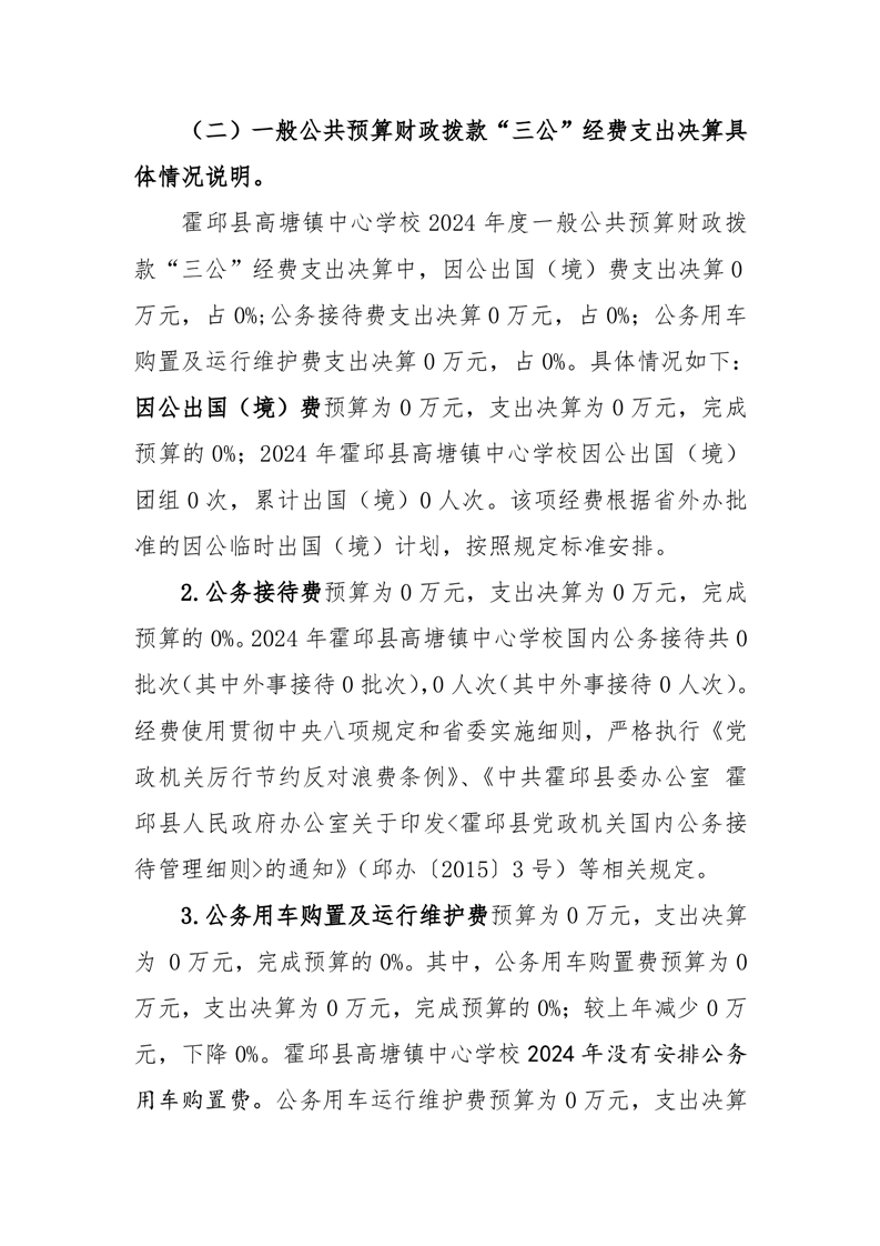 霍邱县高塘镇中心学校2024年度一般公共预算财政拨款“三公”经费支出决算