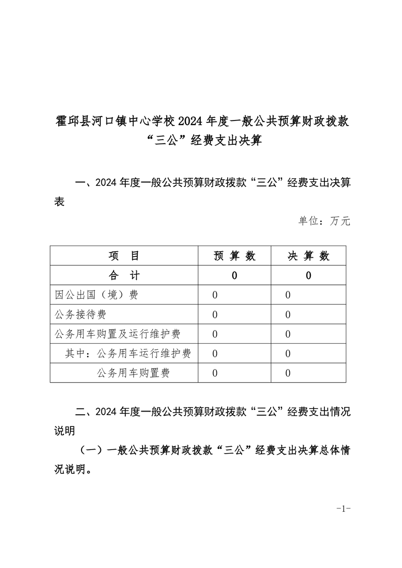 霍邱县河口镇中心学校 2024 年度一般公共预算财政拨款“三公”经费支出决算