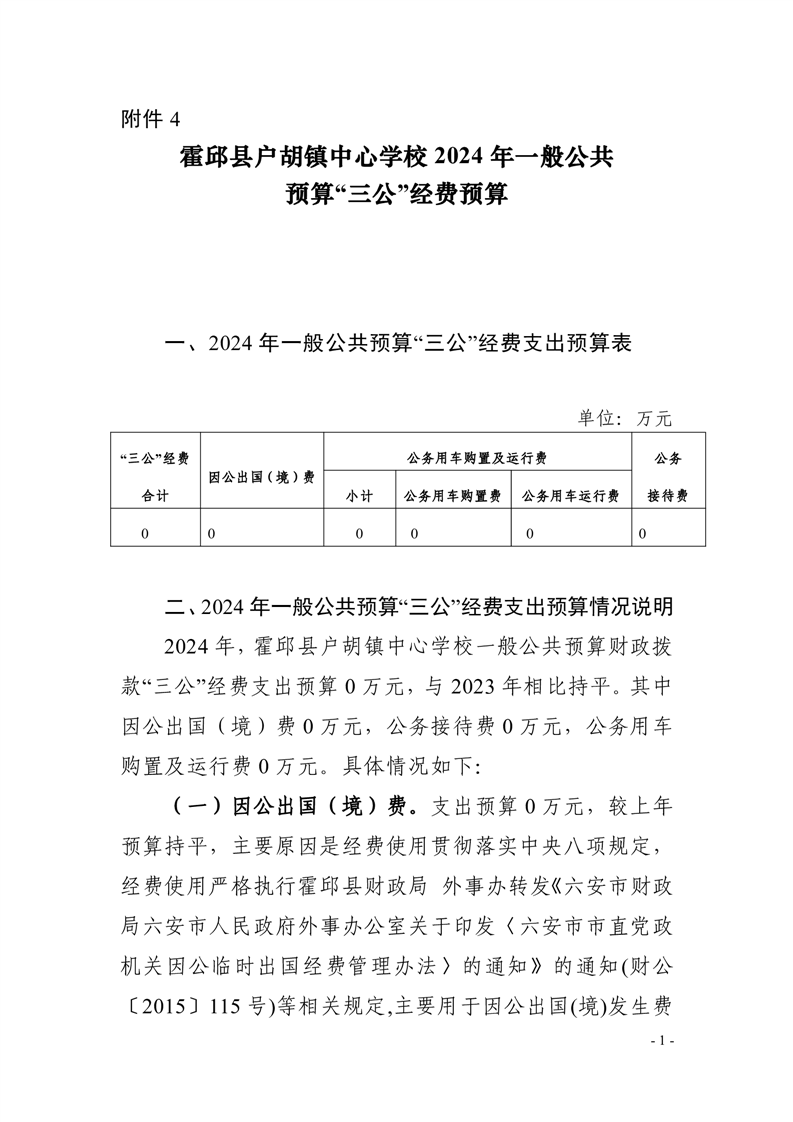 霍邱县户胡镇中心学校 2024 年一般公共预算“三公”经费预算