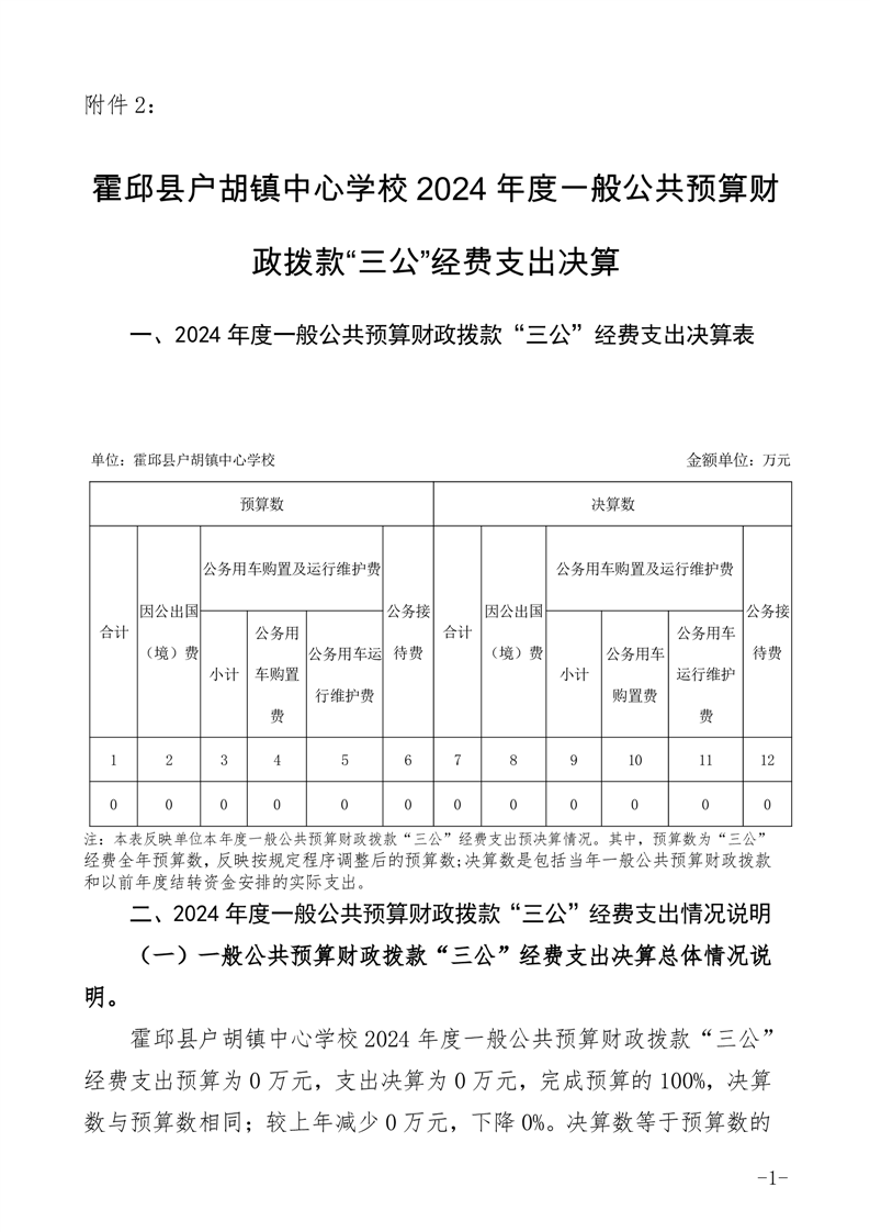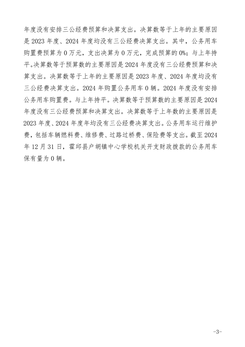霍邱县户胡镇中心学校2024年度一般公共预算财政拨款“三公”经费支出决算