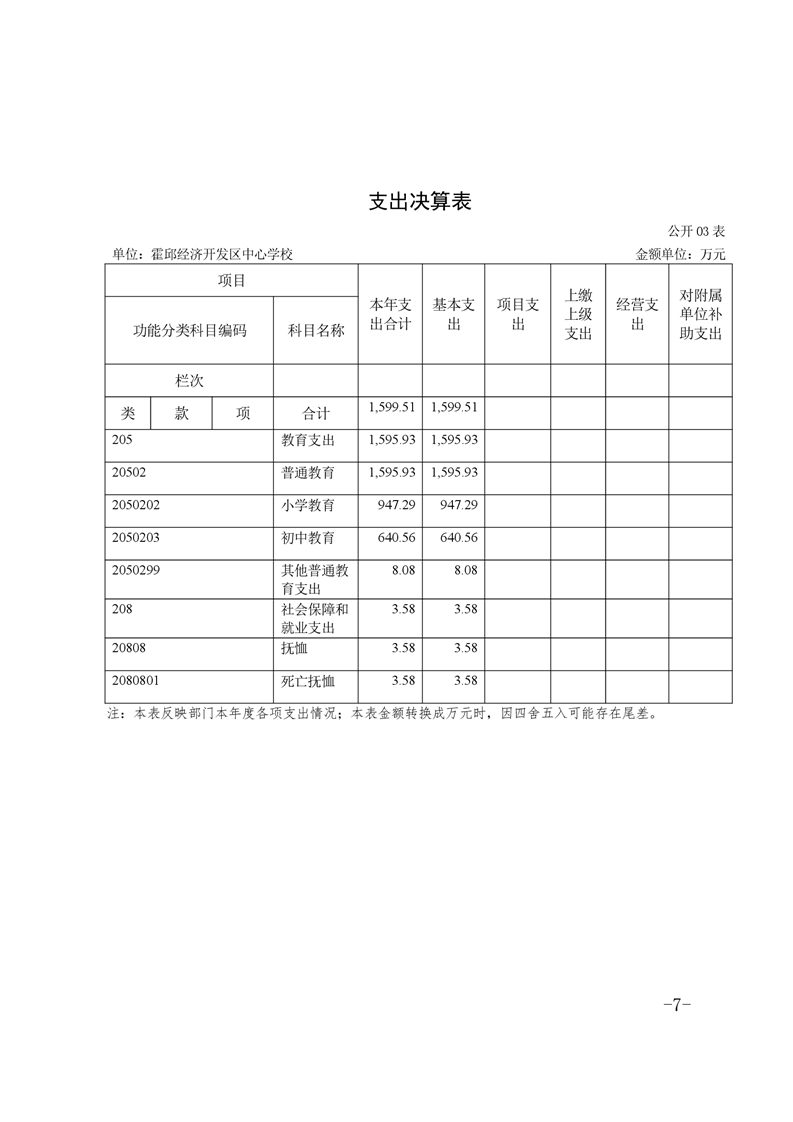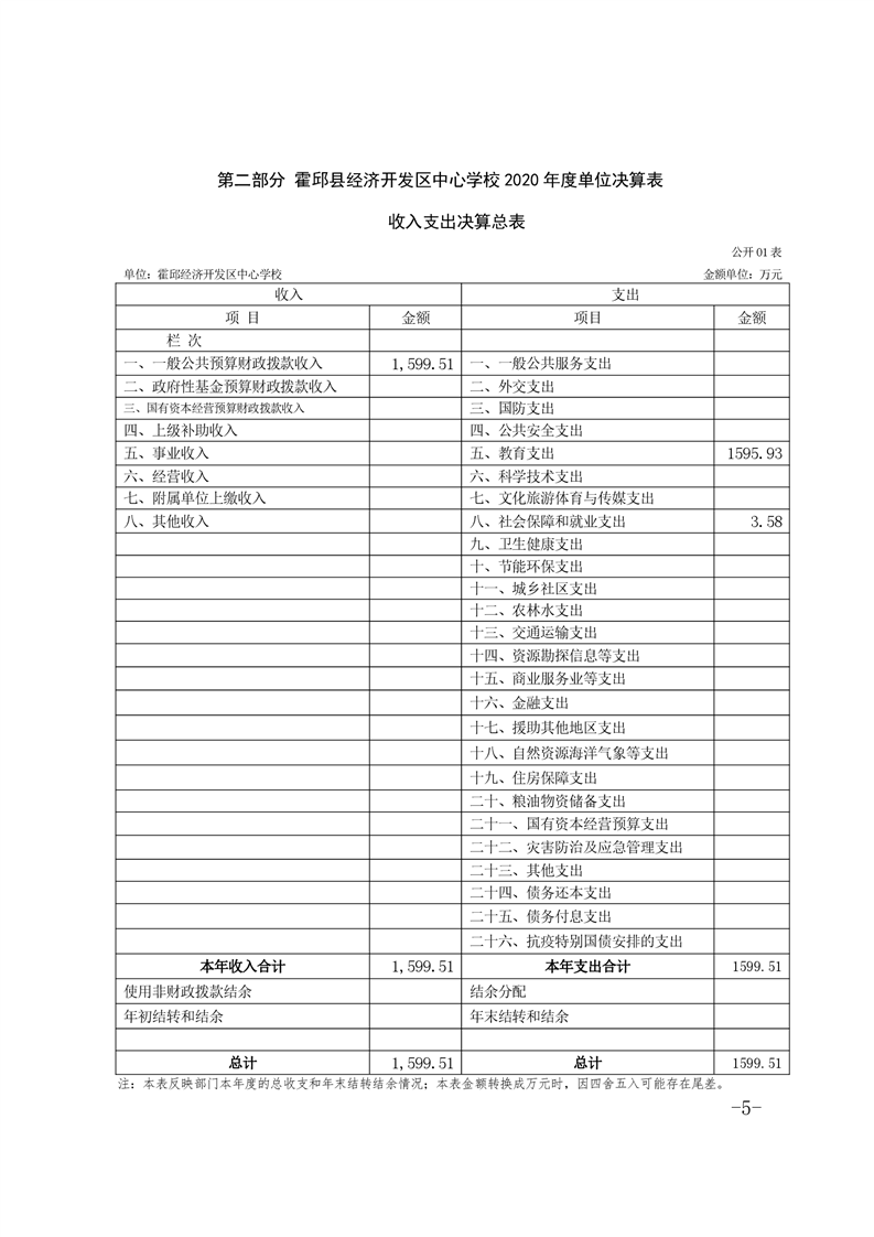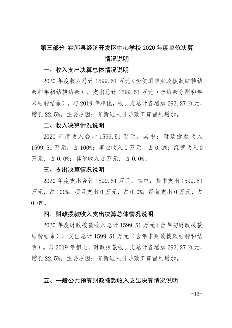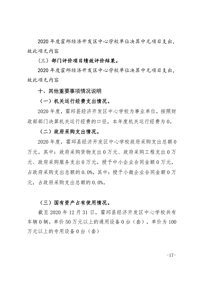 霍邱经济开发区中心学校2020年部门决算公开
