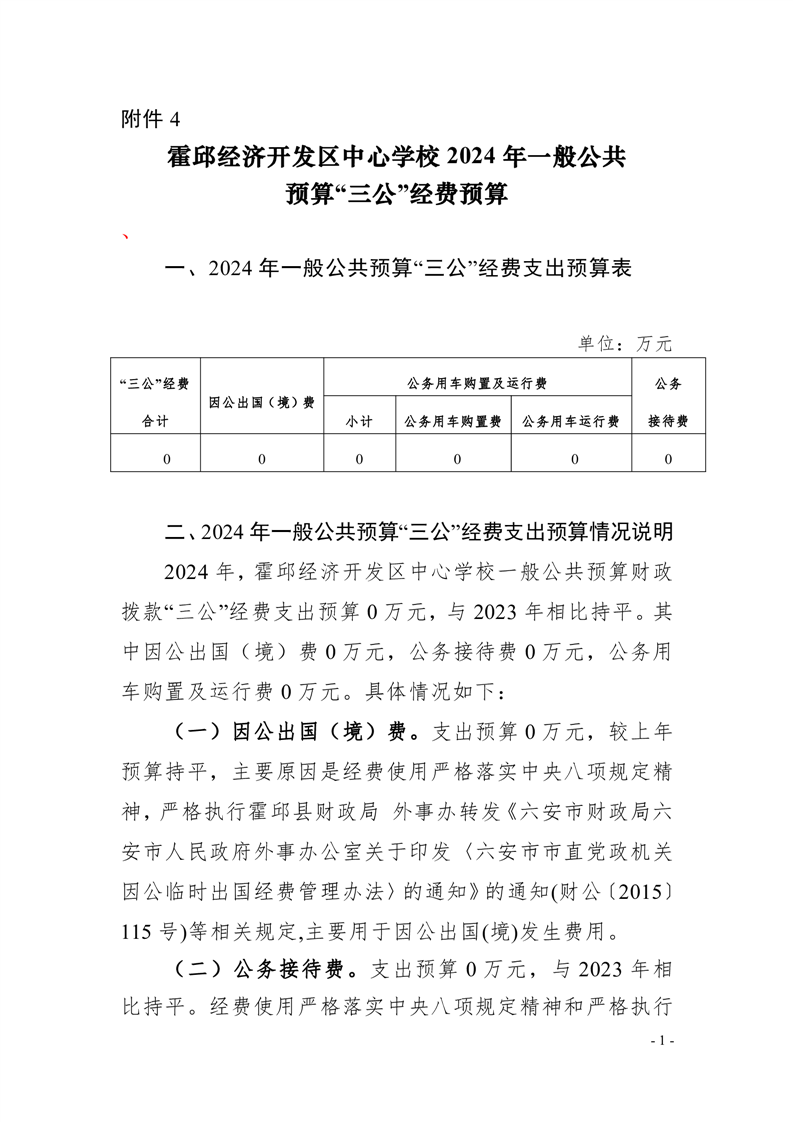 霍邱经济开发区中心学校 2024 年一般公共预算“三公”经费预算