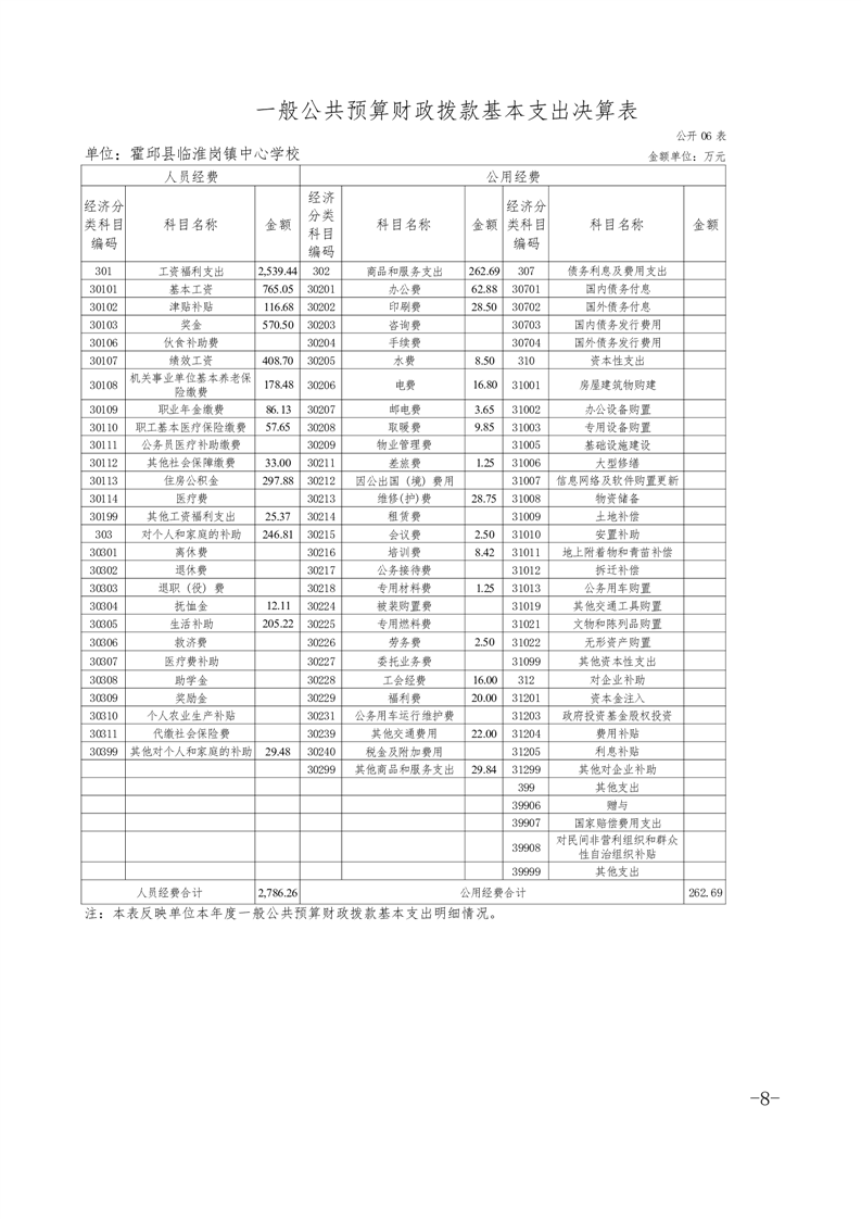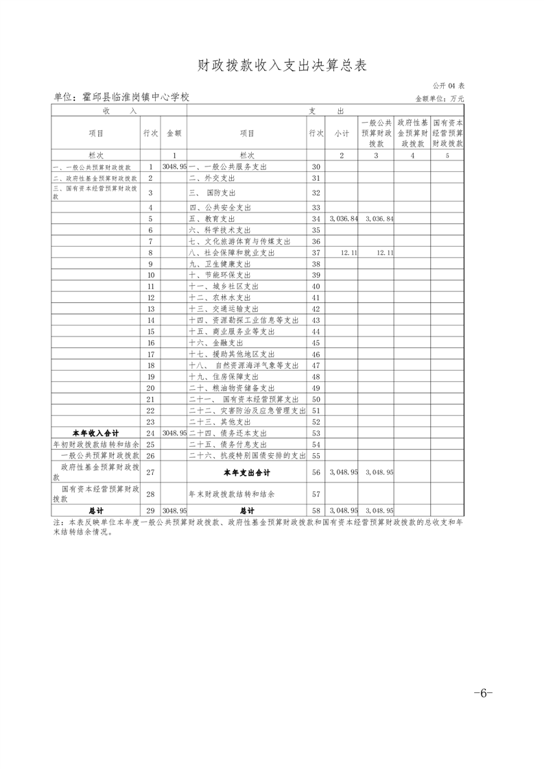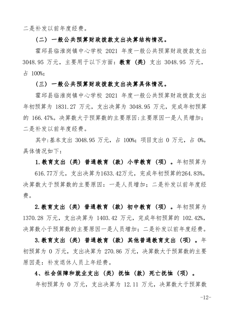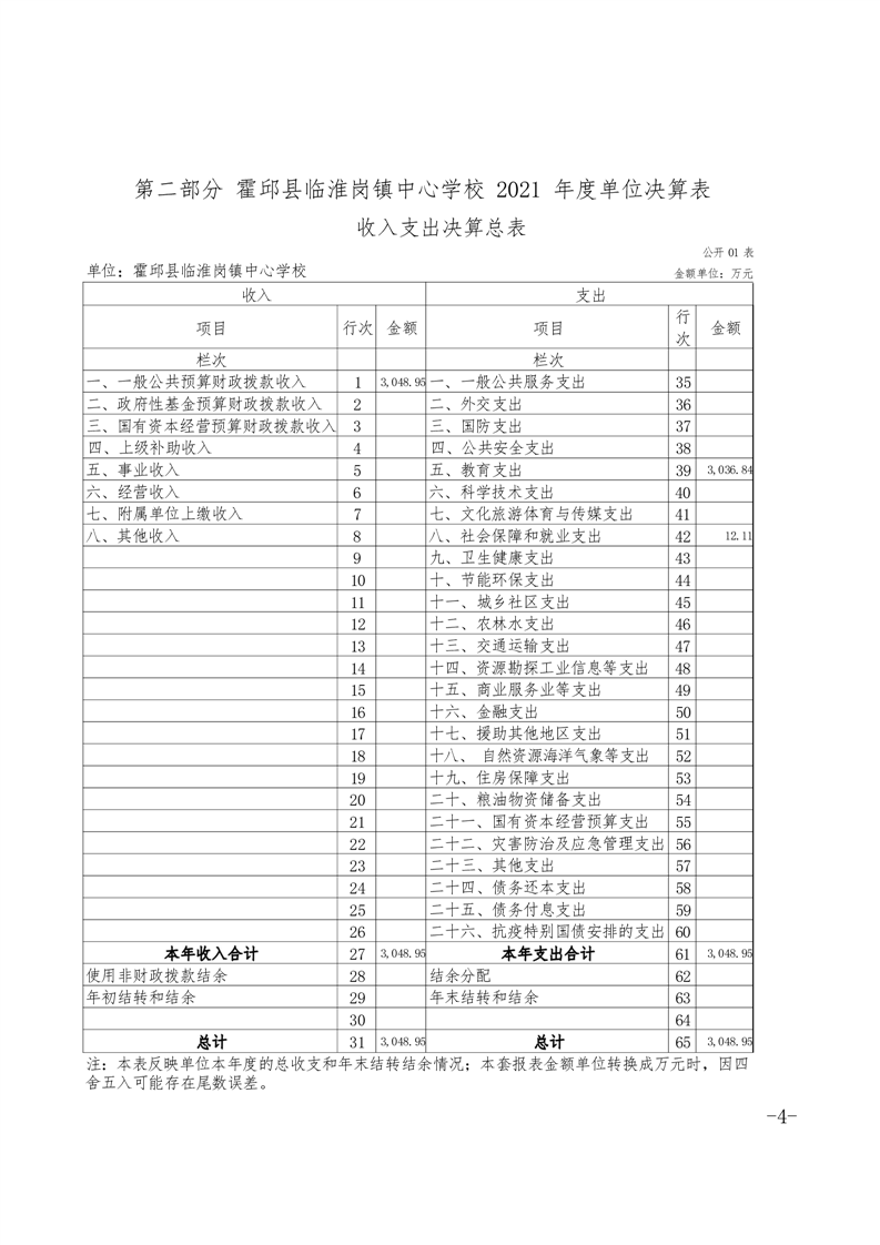 霍邱县临淮岗镇中心学校2021年度单位决算