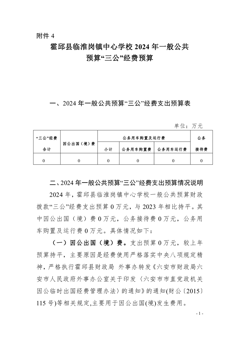 霍邱县临淮岗镇中心学校2024年一般公共预算“三公”经费预算