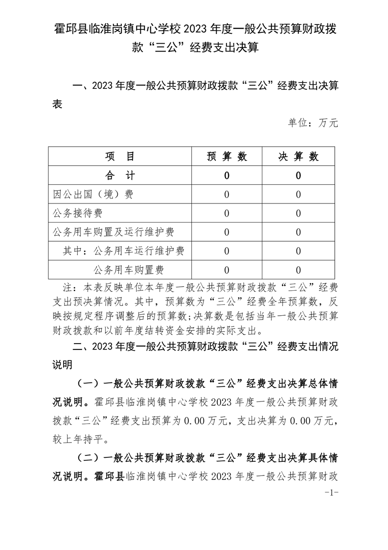 霍邱县临淮岗镇中心学校 2023 年度一般公共预算财政拨款“三公” 经费支出决算