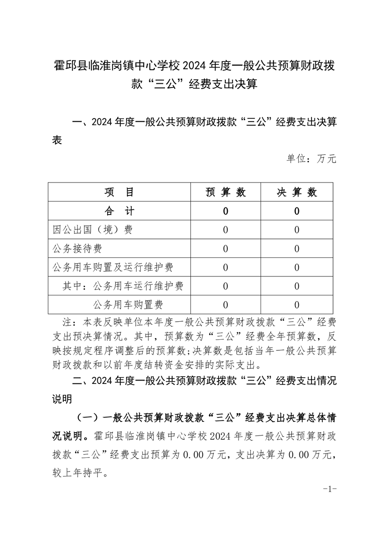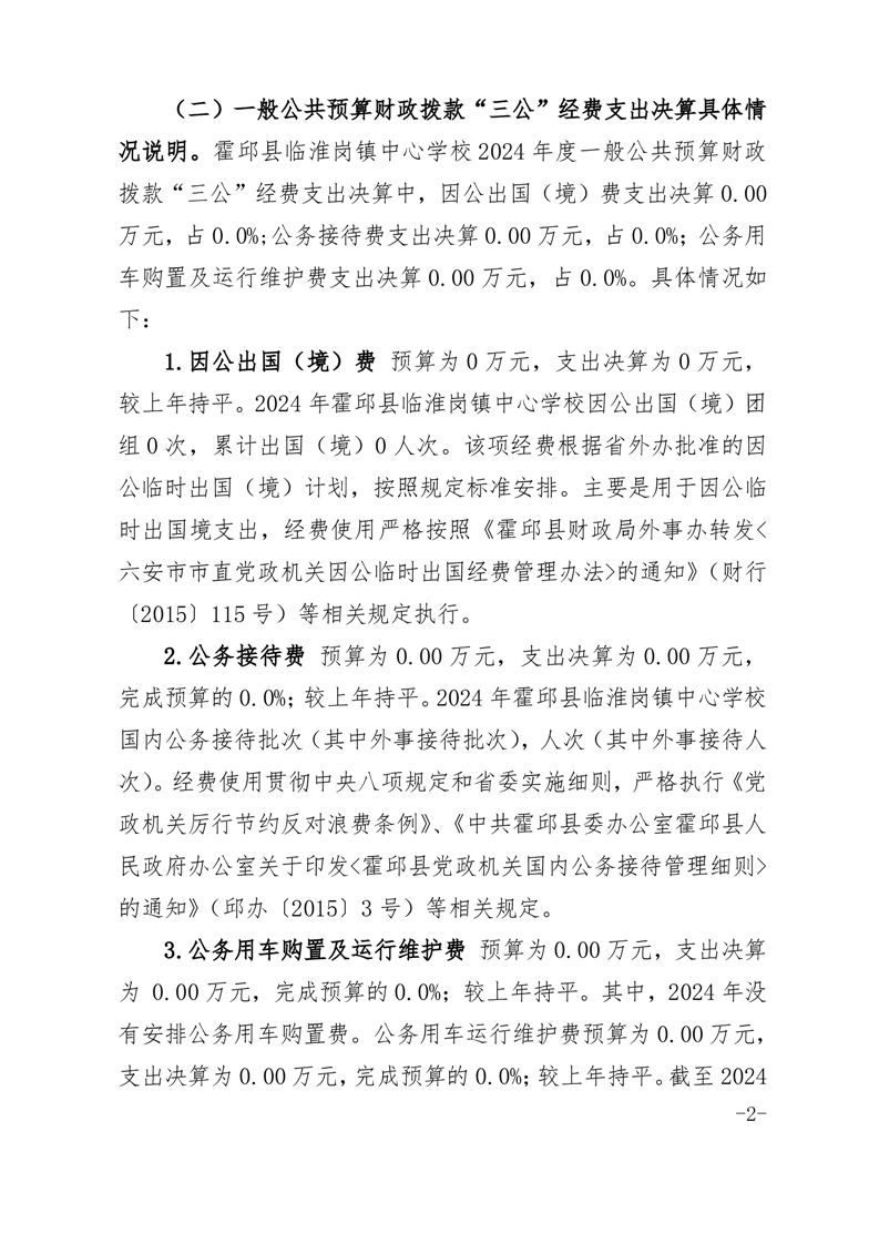霍邱县临淮岗镇中心学校 2024 年度一般公共预算财政拨款“三公” 经费支出决算