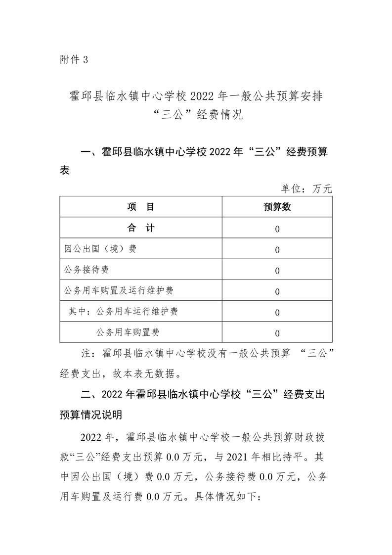 霍邱县临水镇中心学校2022年一般公共预算安排“三公”经费情况