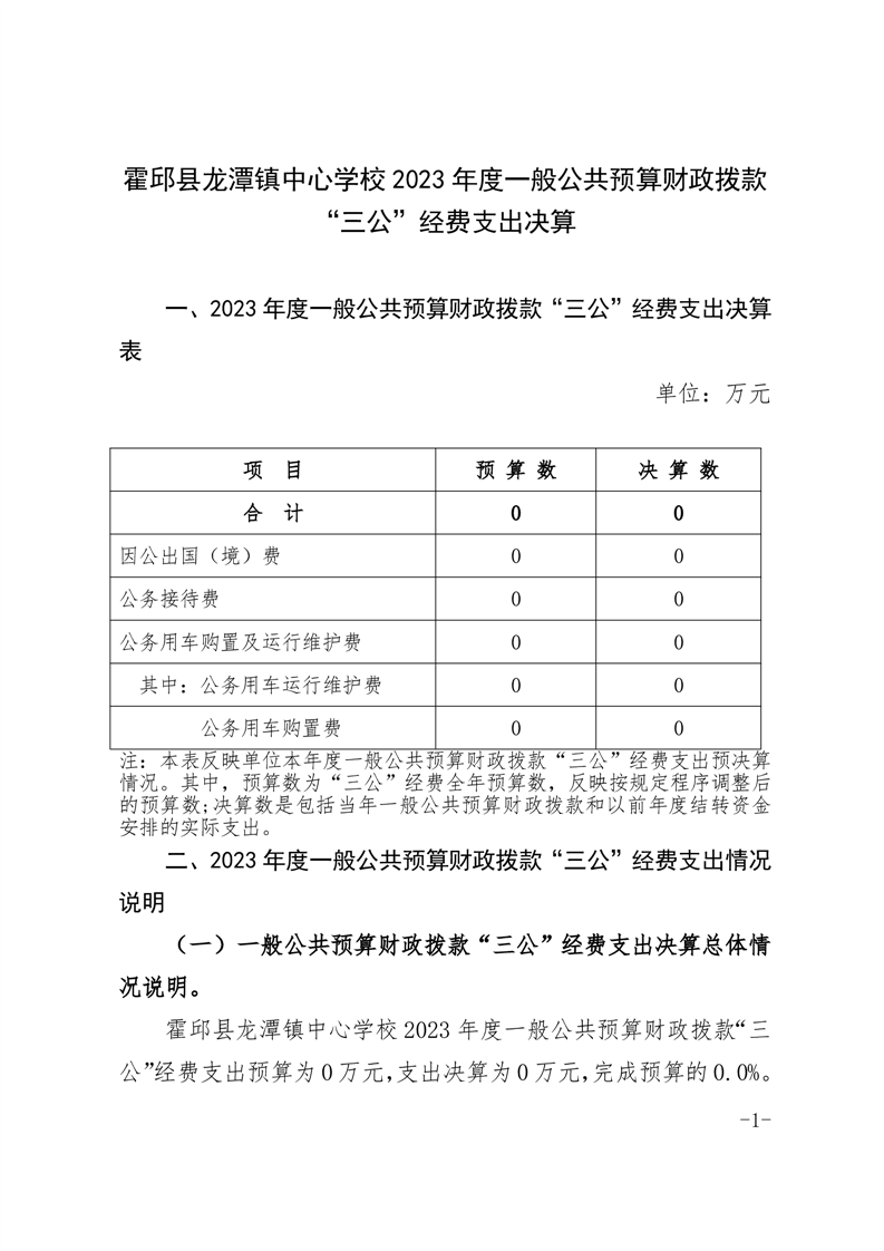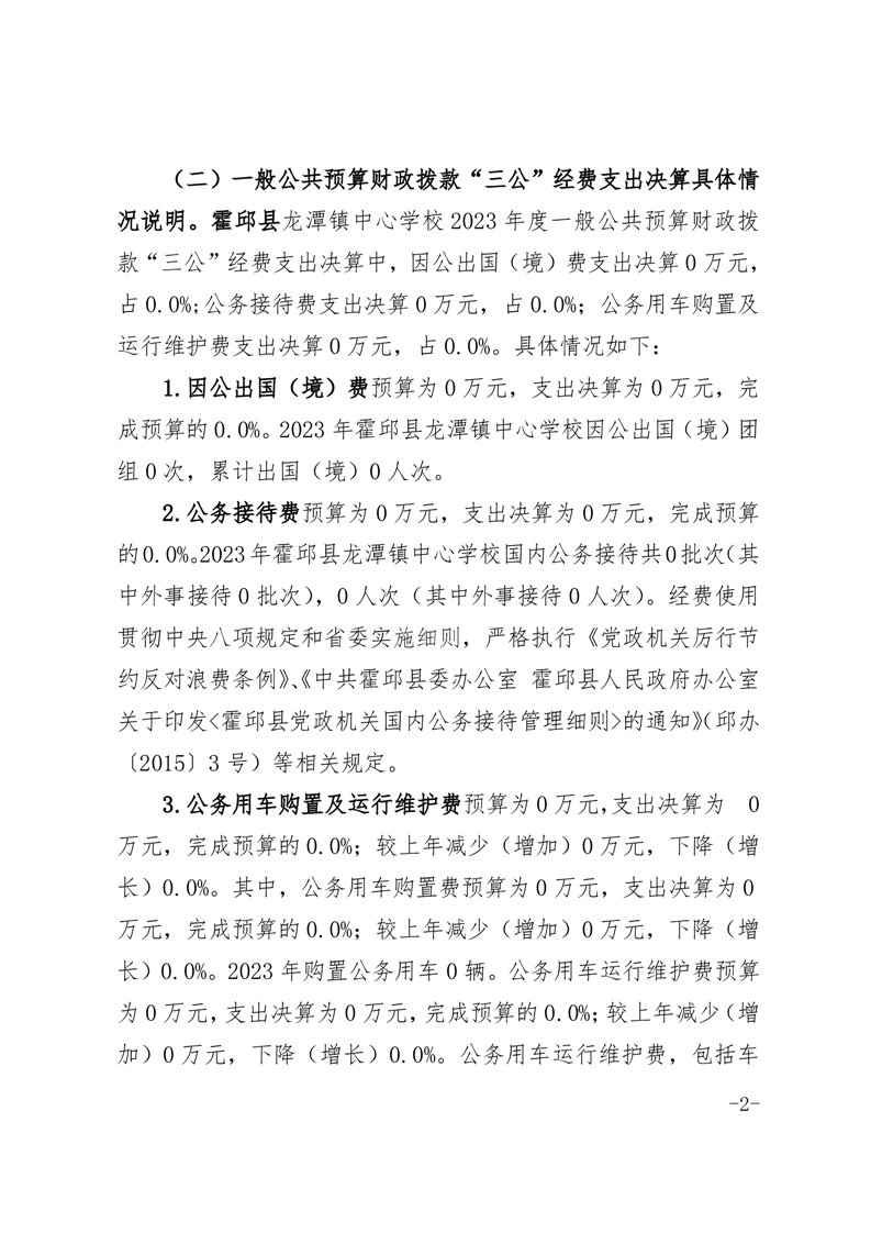 霍邱县龙潭镇中心学校 2023 年度一般公共预算财政拨款“三公” 经费支出决算