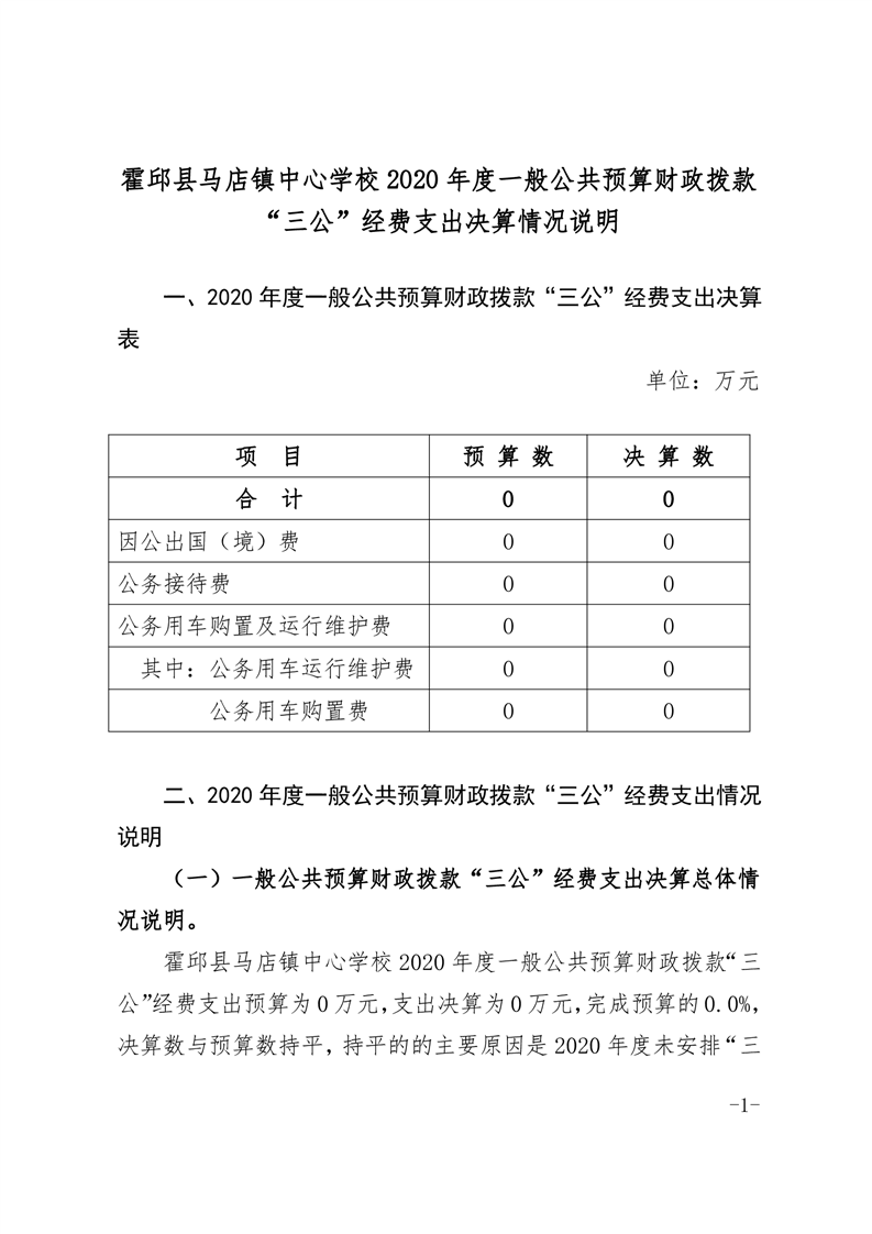 霍邱县马店镇中心学校2020年度一般公共预算财政拨款“三公”经费支出决算情况说明