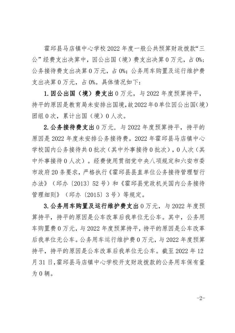 霍邱县马店镇中心学校 2022 年度一般公共预算财政拨款
